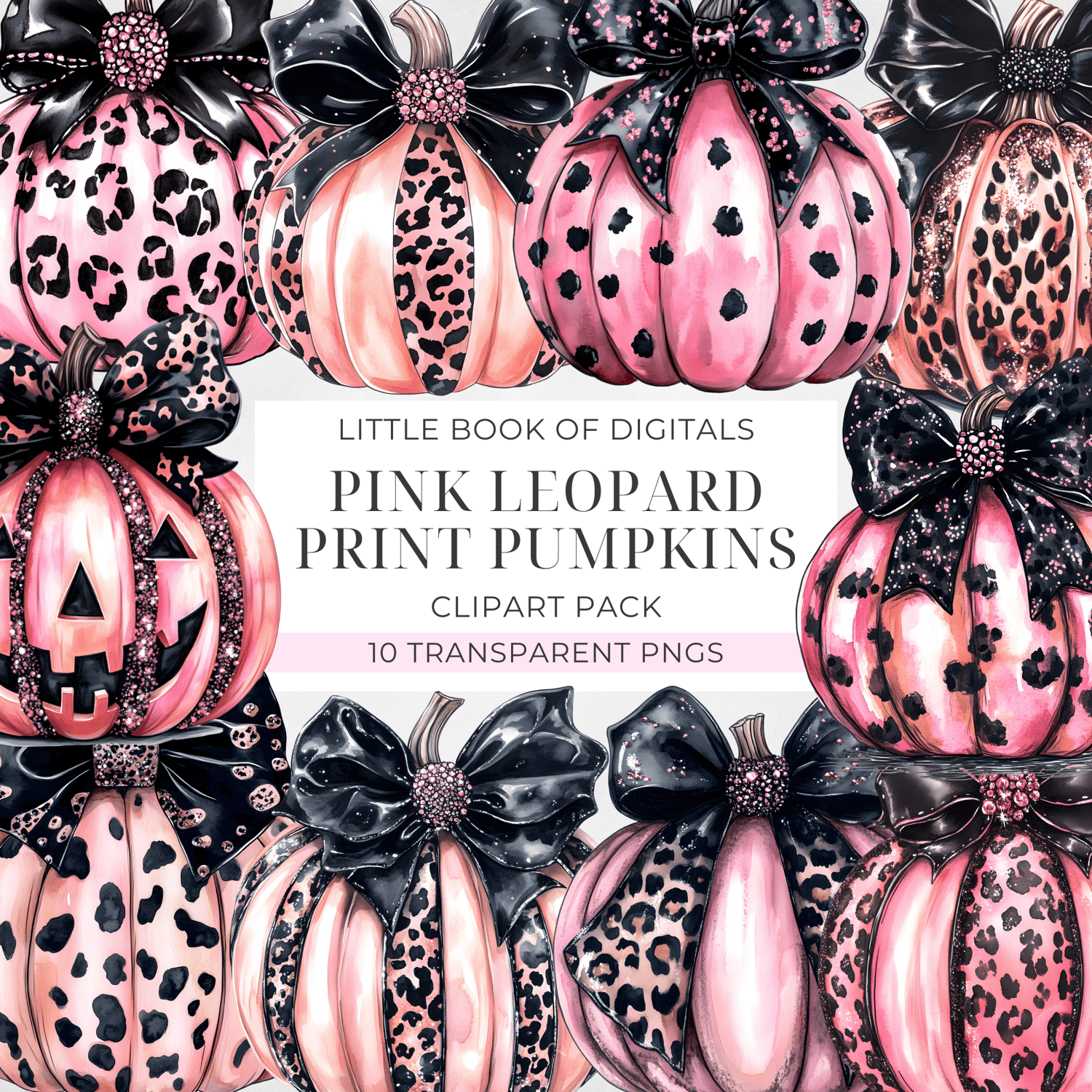 Pink Leopard Print Pumpkins (Set Of 10 Clipart)