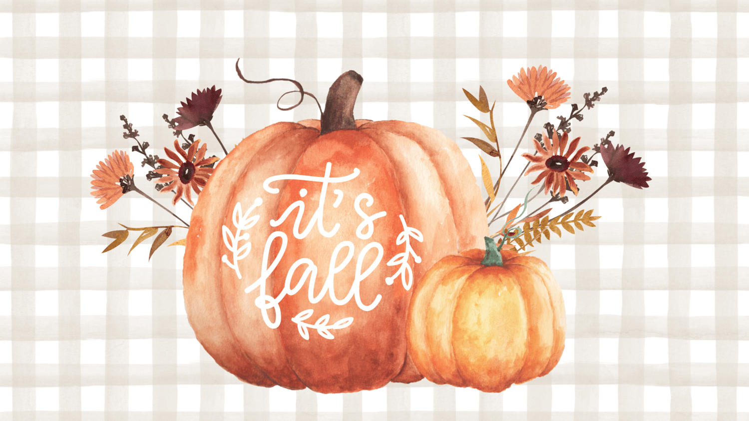It’s Fall Desktop PNG background in gold neutral hues and gingham checked background 🍂