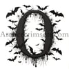 The letter O coloring book halloween occupying 90% of a 1024x1024 image. Use an Old English font style with clear outlines resembling a coloring book page. The character is composed of intricate bat silhouettes, creating a spooky Halloween atmosphere. Use only pure black (#000000) for the character and outlines, and white for the background.2D, black and white style resembling a high-quality adult coloring book page.