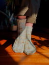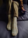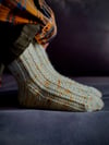 As autumn approaches and the leaves start to fall, we become surrounded by branches. Inspired by the architecture of fall, the Branching Socks are warm, cabled DK socks perfect for cool, crisp days. This cuff down pattern includes instructions for working the cables, both with and without a cable needle.