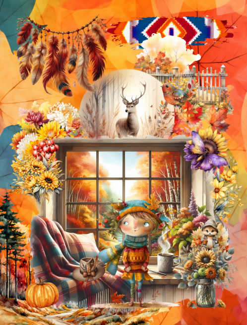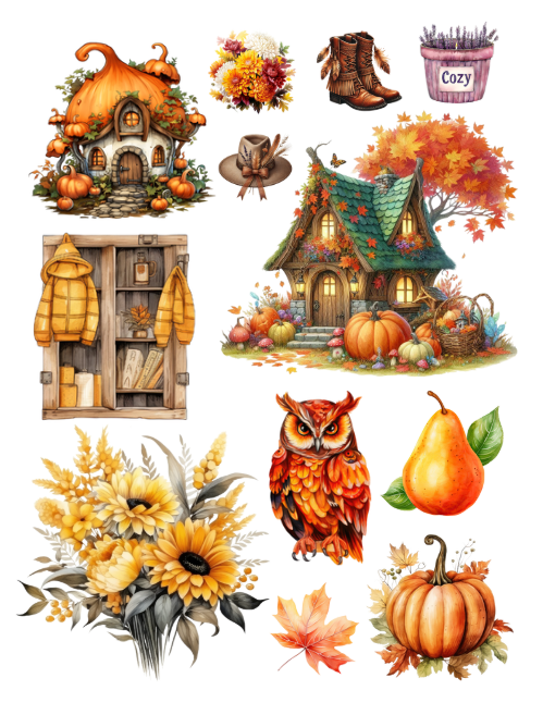 This Cut and Collage Autumn Ephemera Book features: