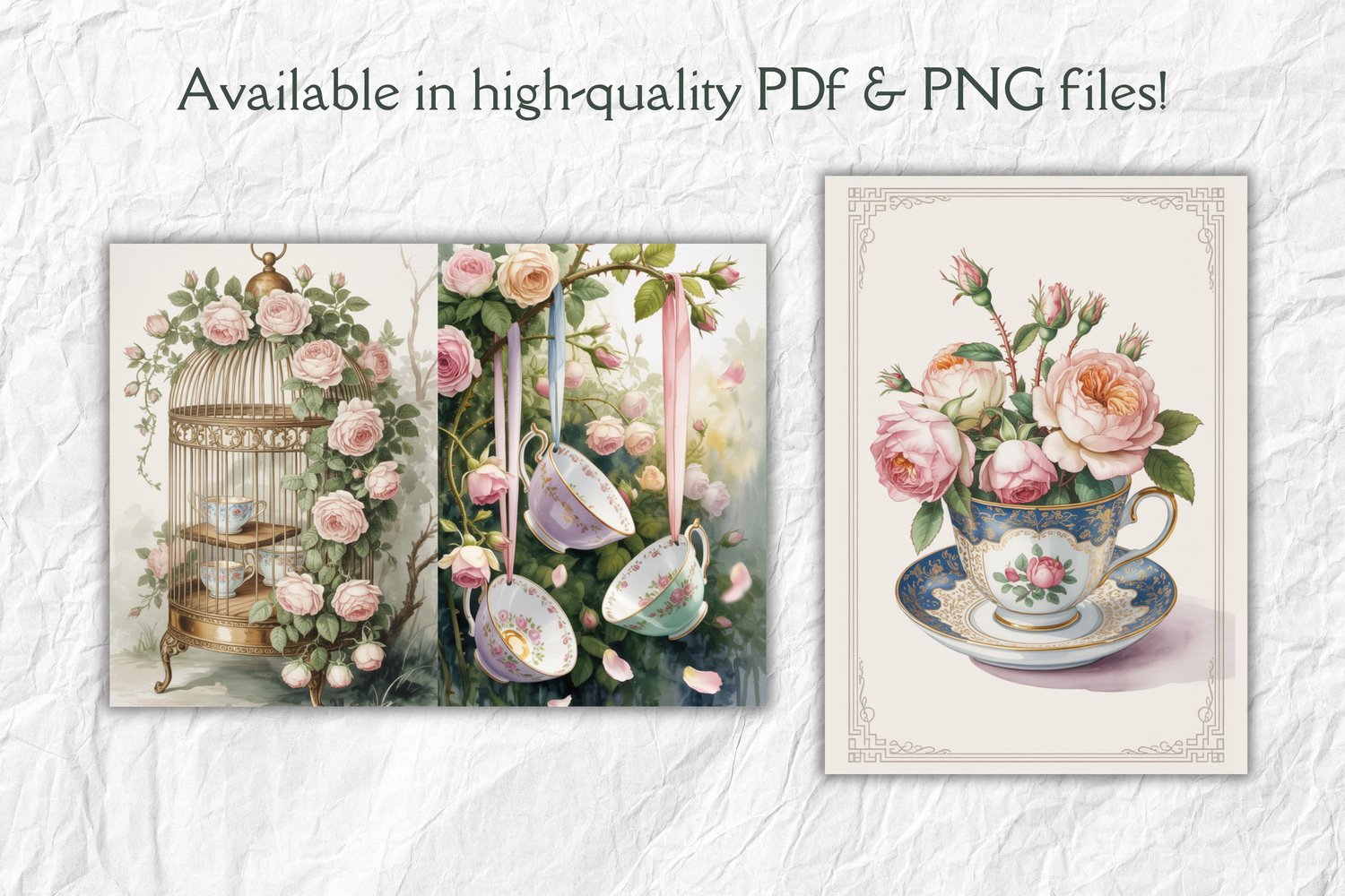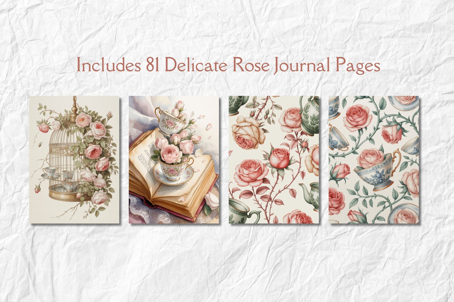 Vintage Tea Party Junk Journal Kit | Watercolor Teacup & Rose Printables | Cottagecore Digital Paper