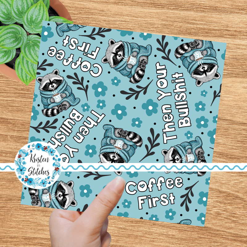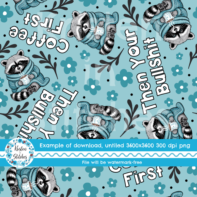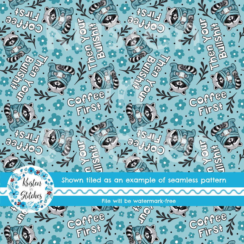 Coffee First Then Your Bullshit Sarcastic Sweary Raccoons Swear Word Seamless Pattern