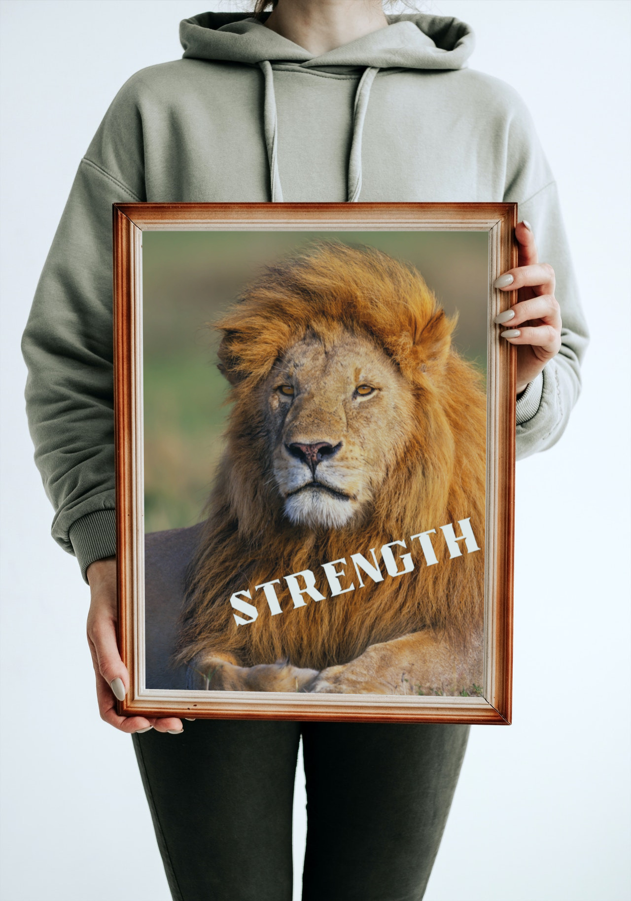 The Lion, as the king of the jungle, is seen as very strong. This animal is symbolic for majestic power. Frame it and make a dynamic display for any room in your home.