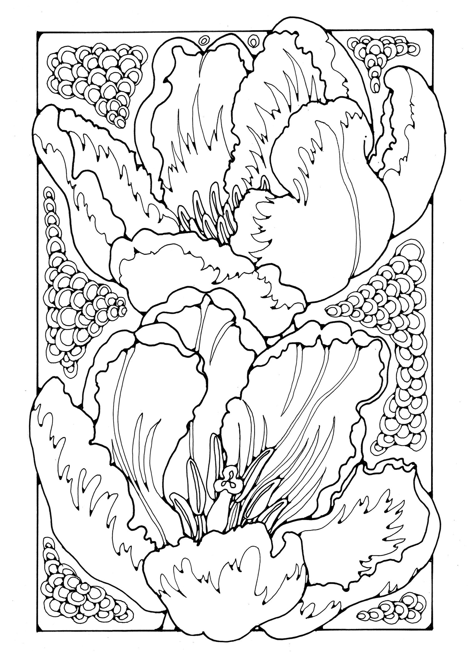 A collection of 42 decorative flower pictures to colour in.