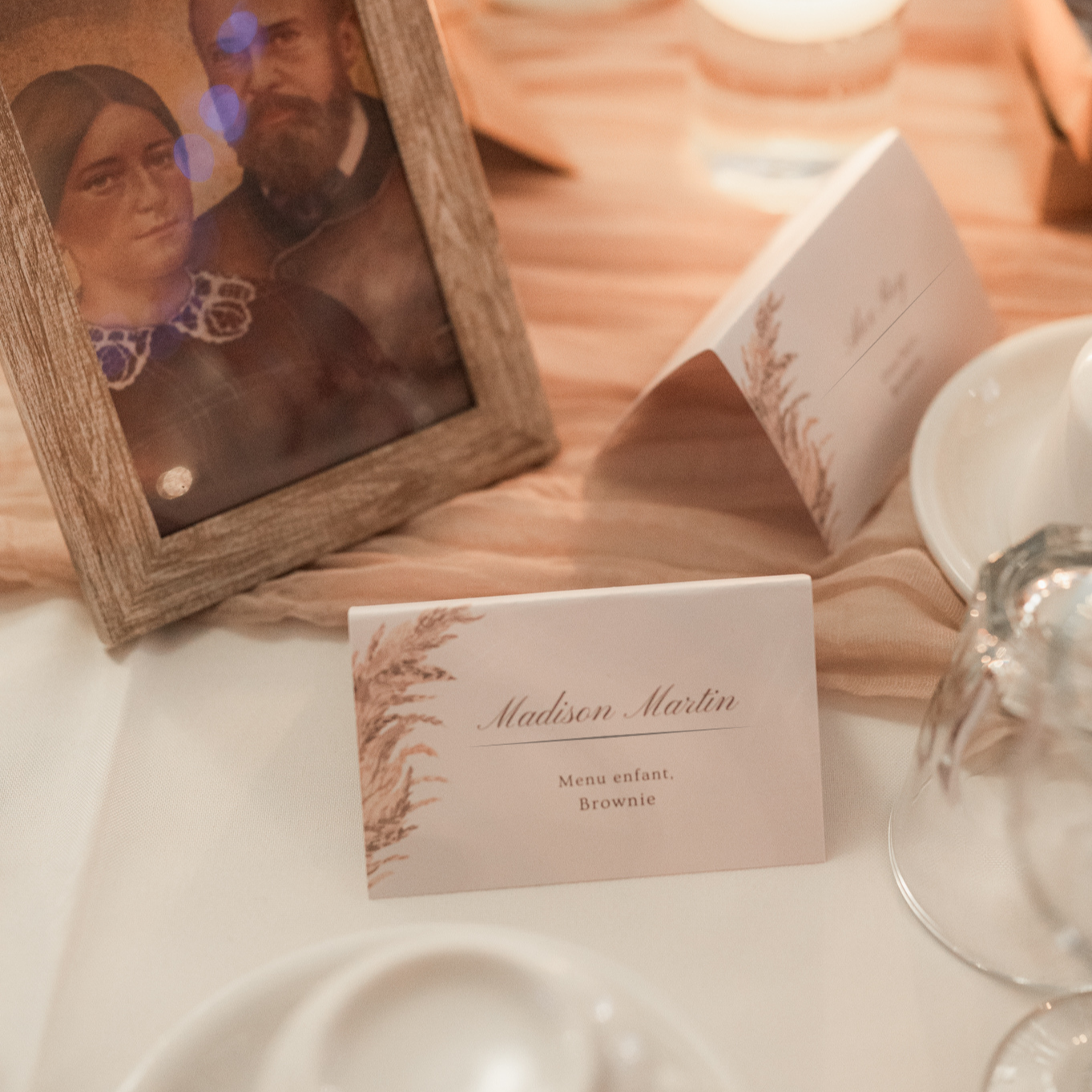 Apportez une touche d’élégance naturelle à votre événement avec ces Marque-places de style bohème de la collection Pampas Simple Taupe, orné d’illustrations de pampas.