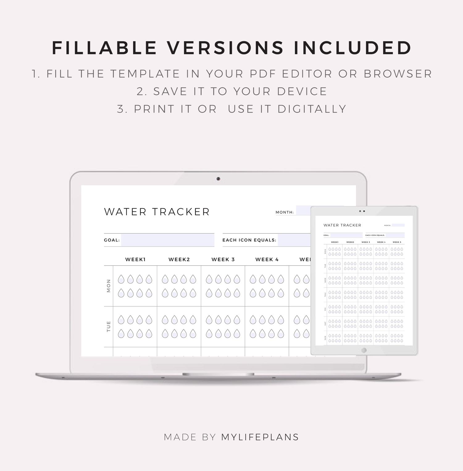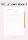 Monthly Water Tracker Printable, Hydration Tracker, Water İntake, Drink Water Reminder, Water Journal