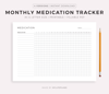 Monthly Medication Tracker, Landscape, Printable & Fillable, A4/Letter Size