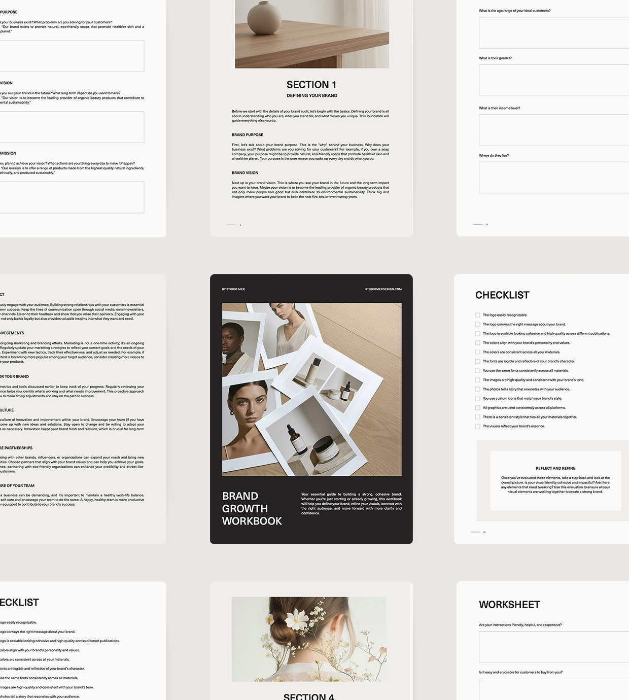 If your brand feels a little off, inconsistent, or not attracting the right people, this workbook helps you figure out why and what to do next. Instead of guessing, you’ll go through a structured discovery process where you review your current brand, define what you want it to become, and identify the exact gaps between the two.