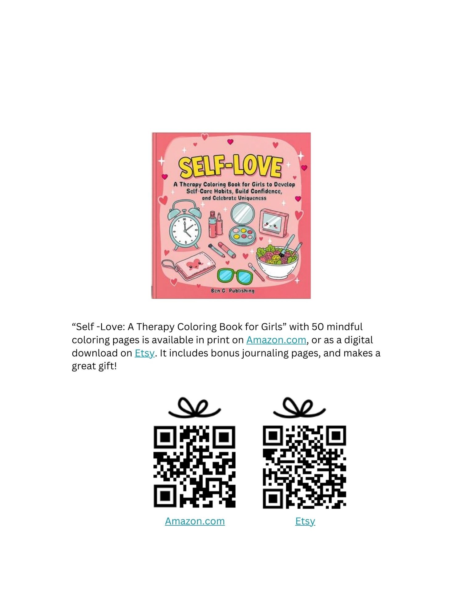 "Self-Love: A Therapy Coloring Book for Girls" is a carefully designed collection of hand-drawn, empowering illustrations and affirmations that inspire self-care, build confidence, and celebrate individuality, diversity, and inclusion. Created by a veteran teacher to support social emotional learning (SEL), this coloring book encourages girls to embrace their uniqueness, develop positive habits, and nurture emotional well-being through creative expression and mindfulness. Perfect for fostering self-love, body positivity, confidence, and joy one colorful page at a time! This book celebrates the wonderful diversity of our world.