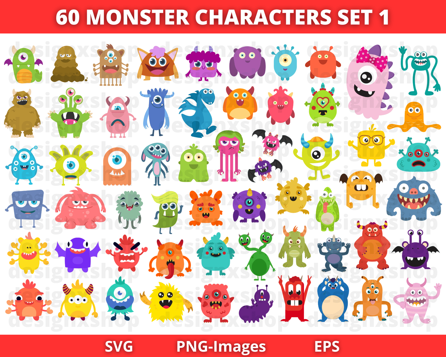 Monsters Clipart | Halloween Monster Characters clipart | monster svg | Monster Party Svg | Halloween svg | Instant Download SVG and PNG