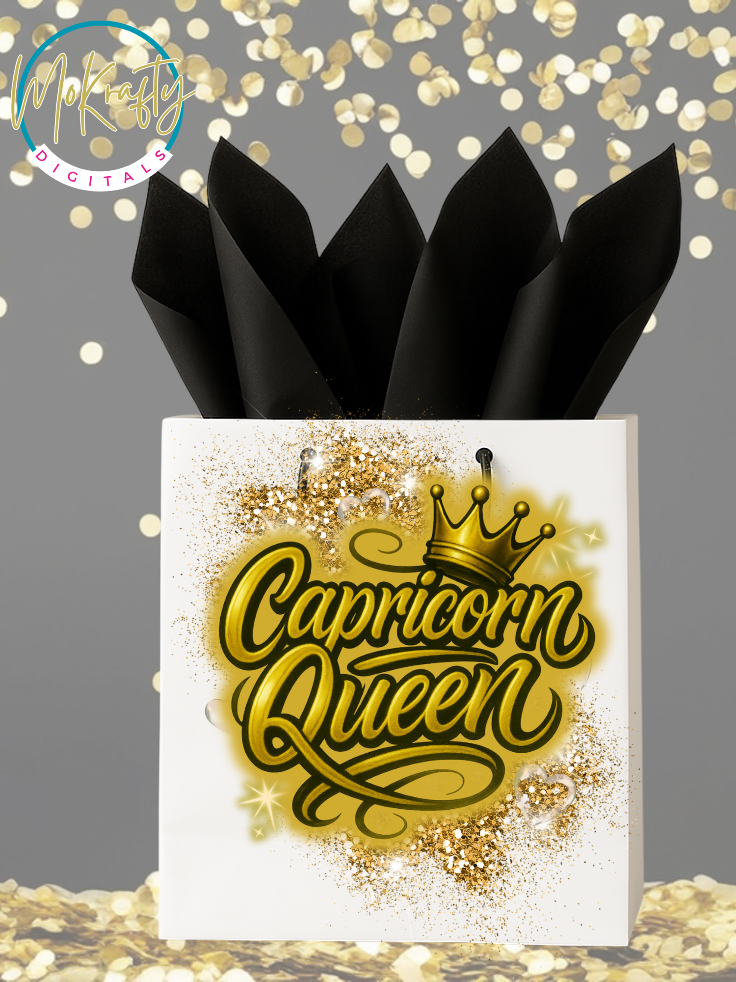 Celebrate Capricorn season in style with this Capricorn Party PNG Bundle from MoKrafty Digitals. Featuring glam Capricorn Queen artwork and the phrase “Ain’t No Party Like a Capricorn Party,” this set includes designs for shirts, bags, and cups—perfect for birthdays and zodiac events.