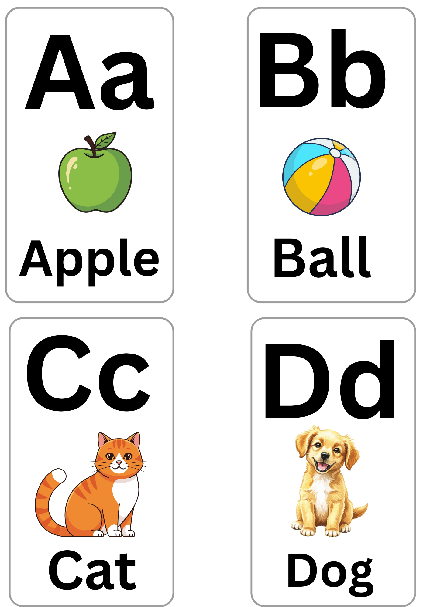 Make learning the alphabet simple and fun with these printable A–Z flashcards. Designed for online teaching, homeschooling, and classroom use, each card features clear uppercase and lowercase letters with bright, easy-to-recognize pictures.