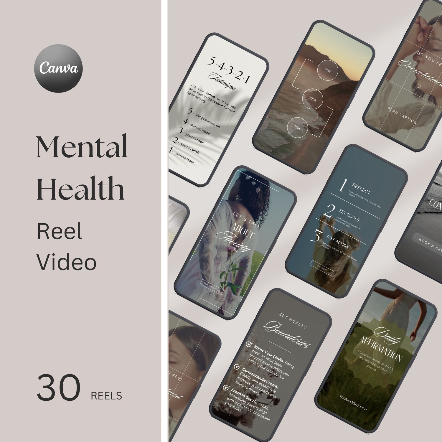Mental Health Template made to help make a meaningful impact in the realm of mental health. Enhance your outreach, connect with your audience, and make a lasting difference in your client’s well-being. Tailored for therapists, counselors, and mental health advocates, this video template is versatile across various platforms, including TikTok, Facebook, and Pinterest. Save your time with this high quality, done-for-you social media content. This Canva template is ready to be posted in just a few clicks!