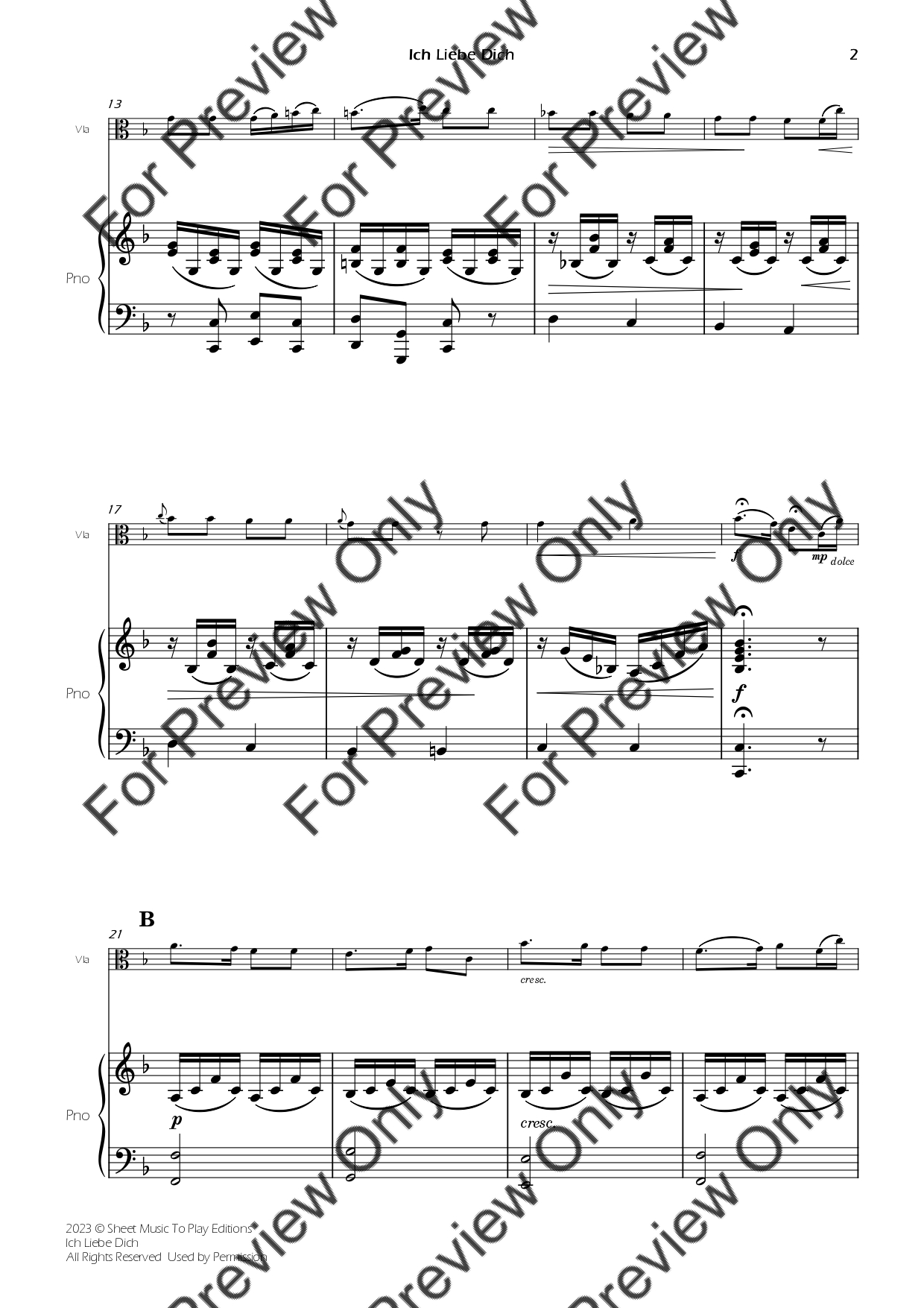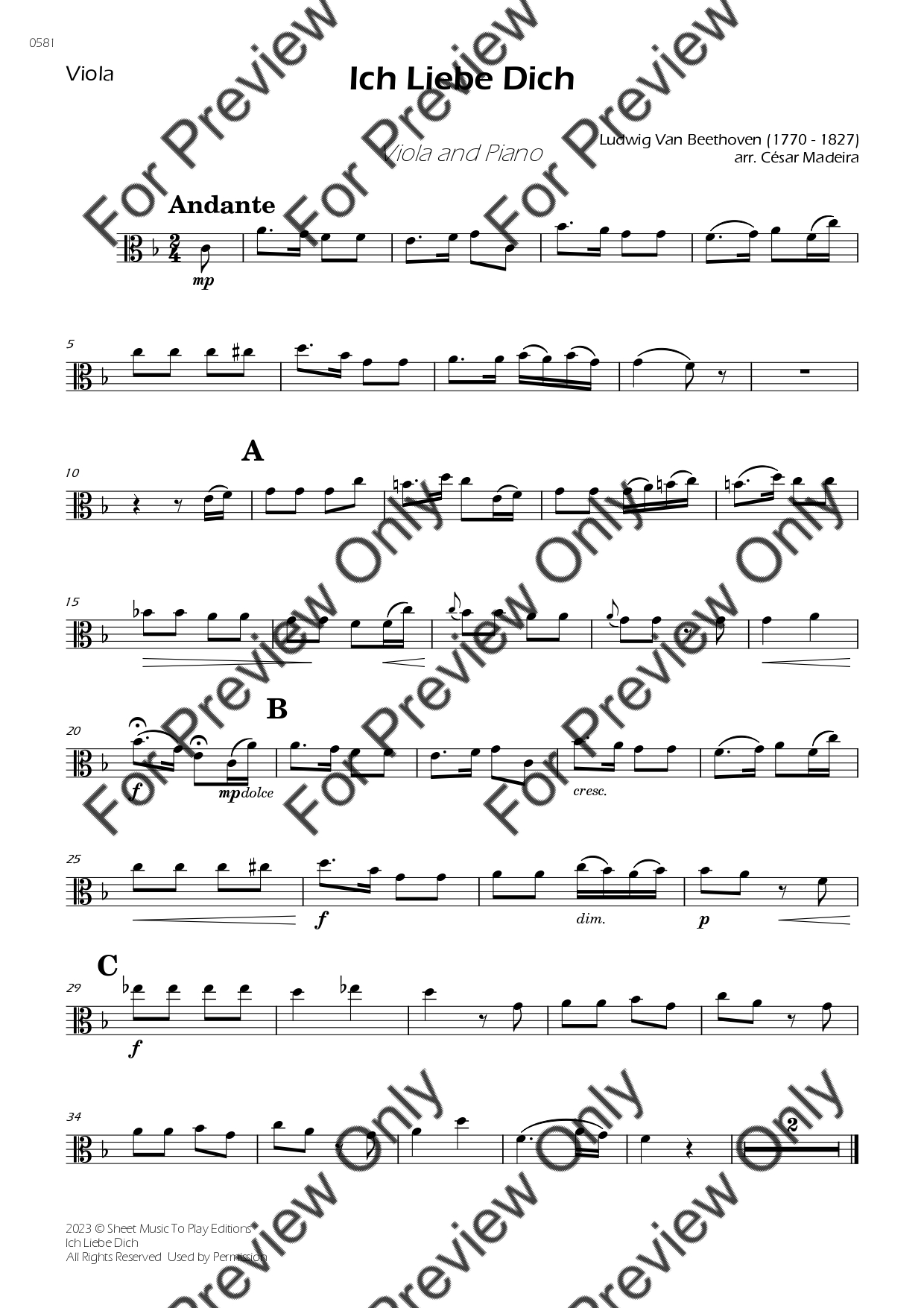 Ich Liebe Dich by Ludwig Van Beethoven. Arrangement for Viola and Piano. With Full Score and Individual Parts. Have fun!