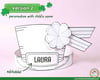 - VERSION 2: personalize the hat by adding a child's name to the hat's buckle, then decorate the hat with the clover rosette and Irish flag ribbons.