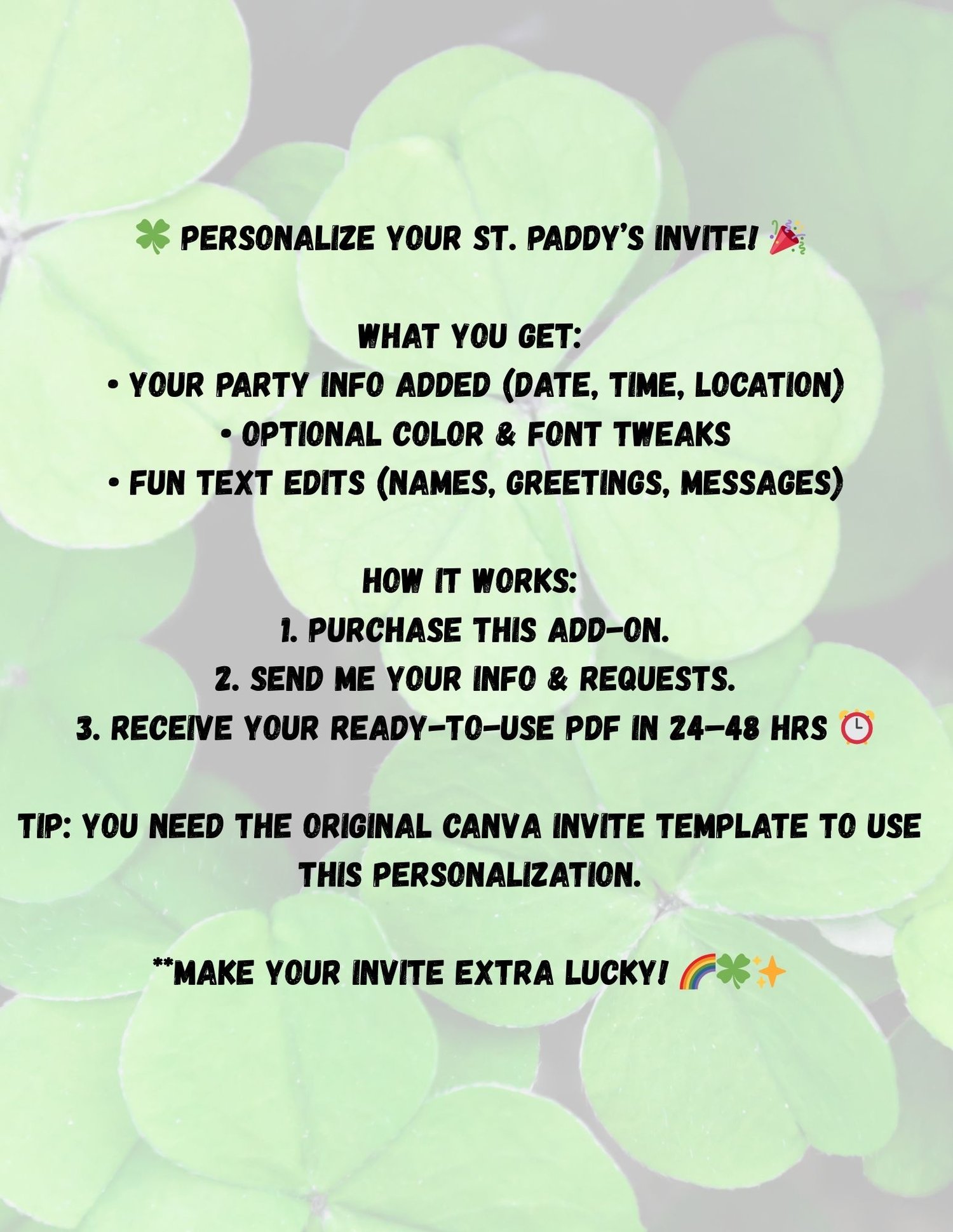 🍀 Make It Yours! St. Paddy’s Day Invite Customization Add-On 🎉