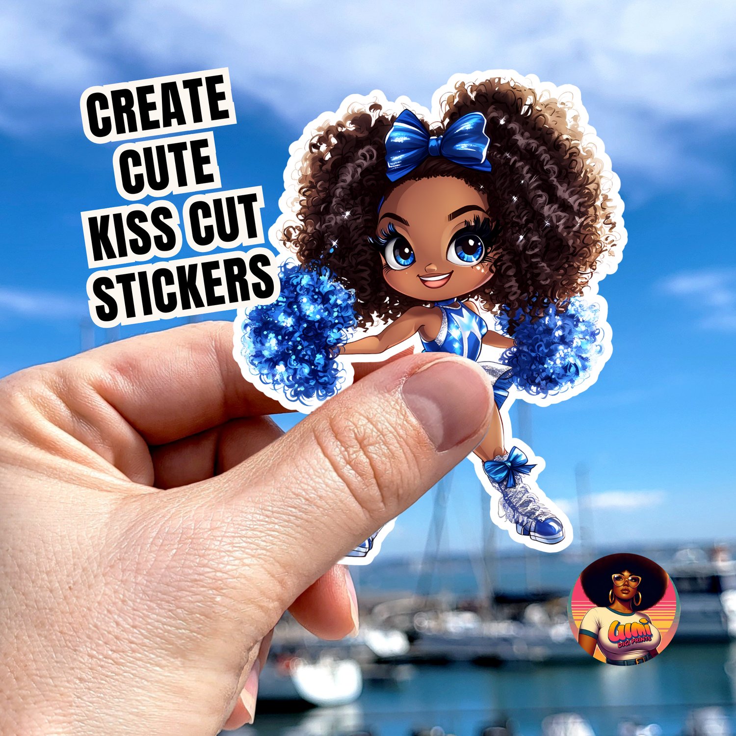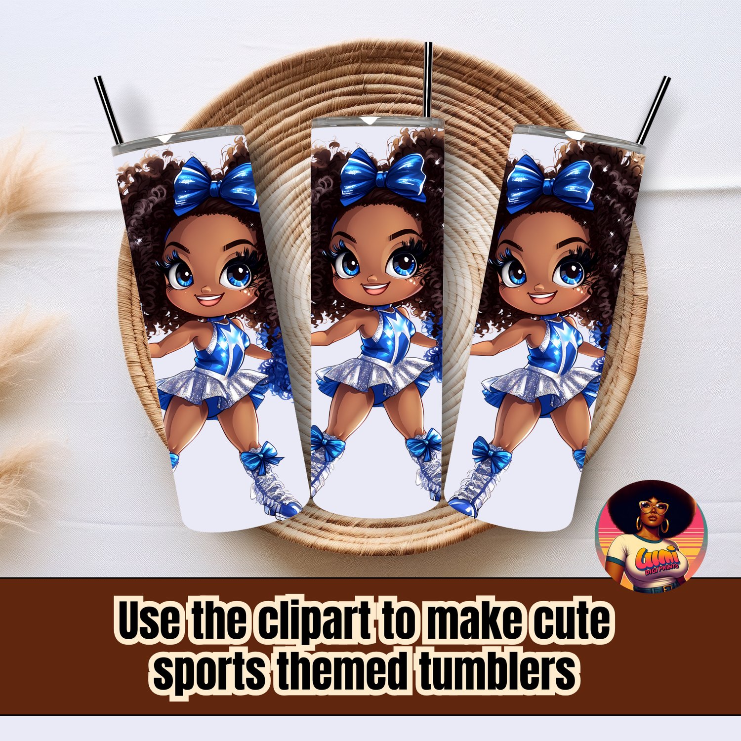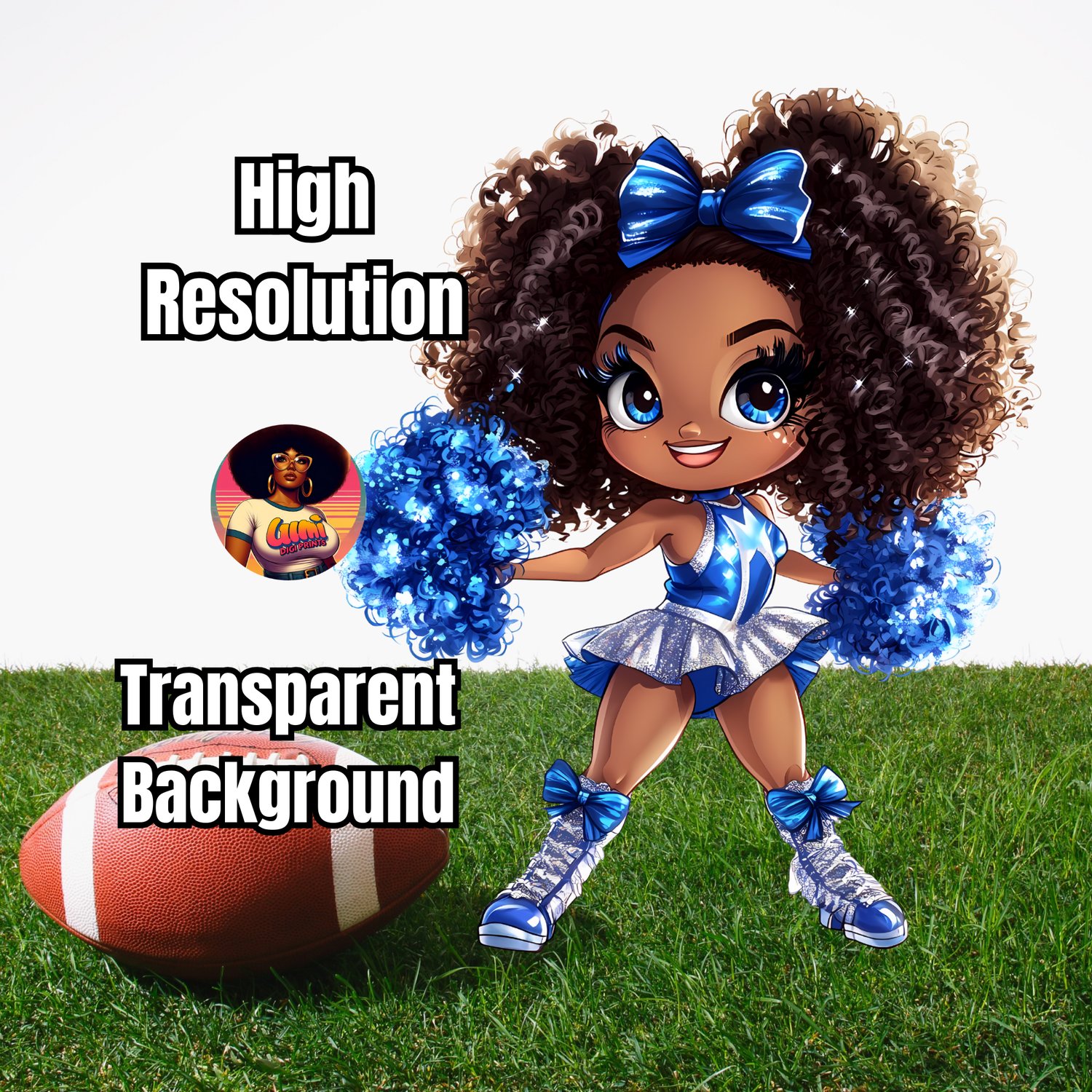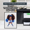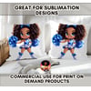 This character is full of life, from her sparkling eyes and confident pose to her beautiful curly hair puffs tied with big blue bows. This is the perfect cute Black girl sports clipart for sublimation, allowing you to create vibrant, professional-looking products with ease.