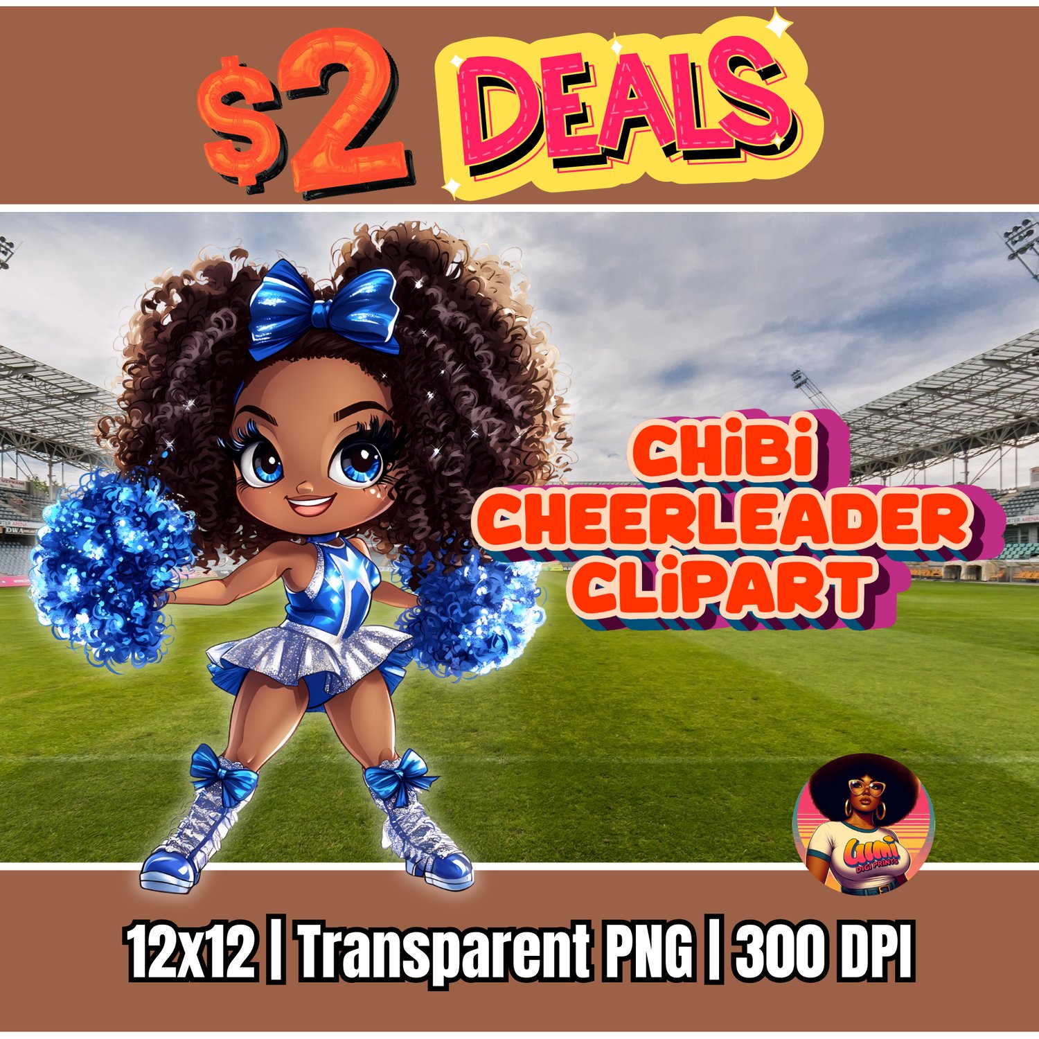 Cute Chibi Black Cheerleader PNG | Black Girl Clipart for Game Day Crafts
