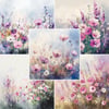 Watercolor Spring Flower Field Background, Digital Floral Paper Pack
