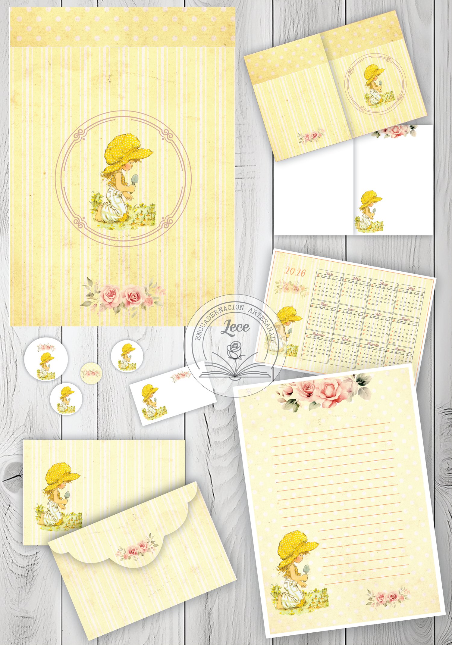 Set imprimible de papelería Sarita Primaveral (Tono amarillo)