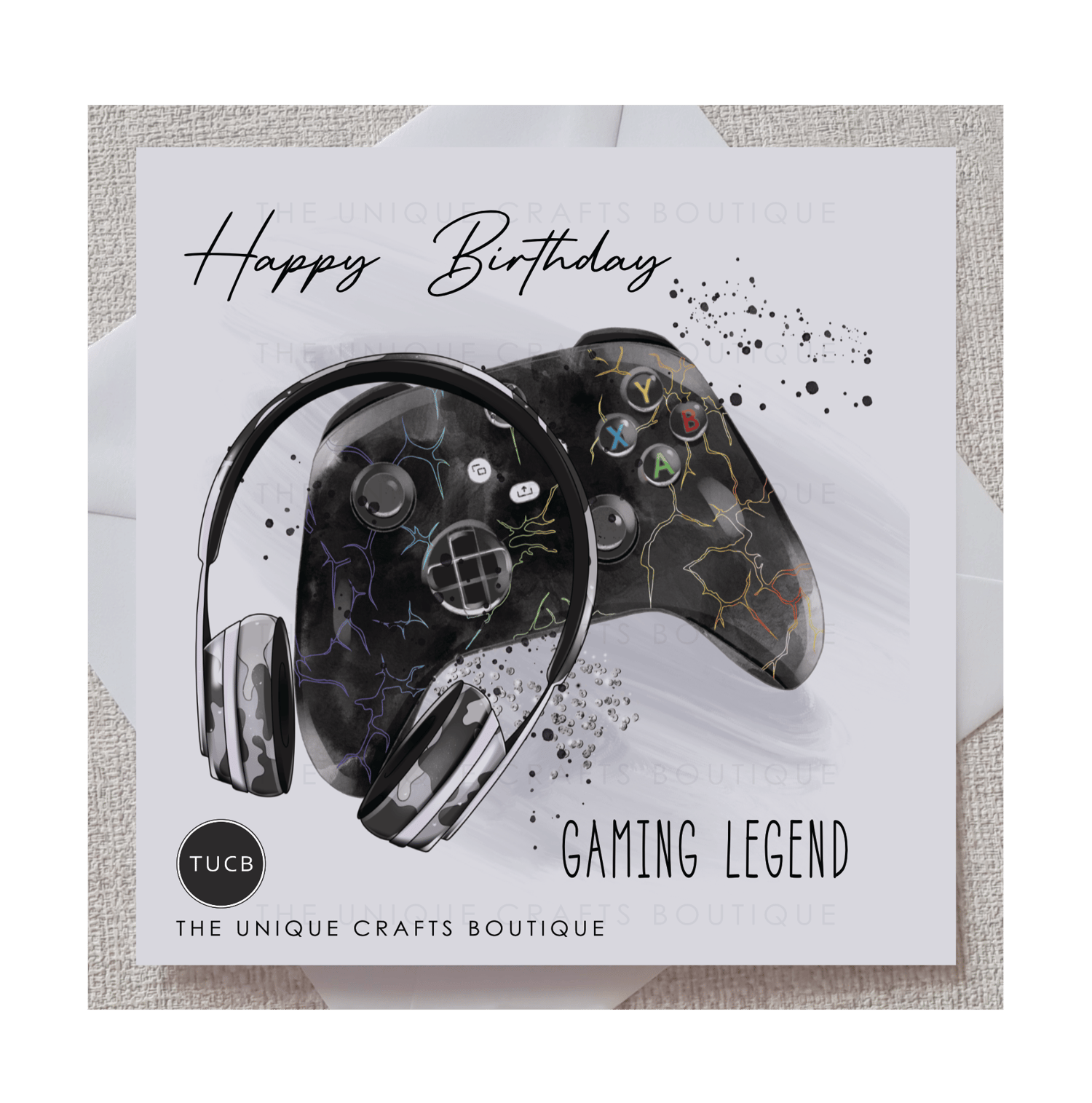 Printed with a Black controller and headset and displaying the message 'happy birthday, gaming legend', this card is a certain to make your loved ones smile.