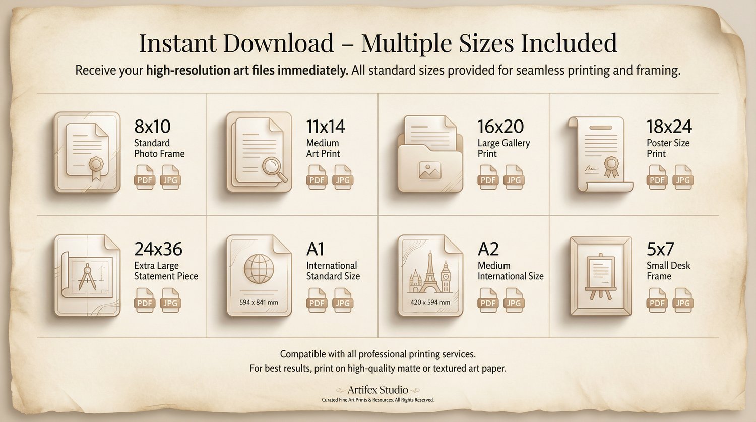 You receive multiple print ratios for seamless framing in standard US and international sizes.