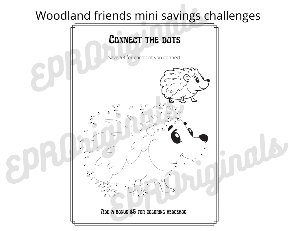 Triple the fun for adults or kids. Connect the dot savings challenges offers you 2 options how to save. You can save the same dollar amount for each dot you connect as labeled. If you want a bigger challenge you can also save the dollar amount of the dot number. These 3 savings challenges feature cute woodland creatures.