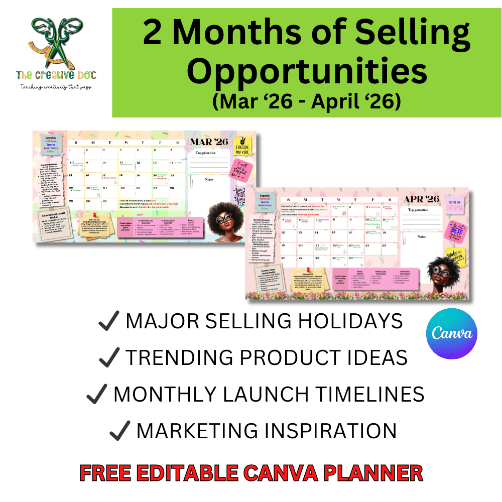FREE: March + April 2026 E-Commerce Planning Calendar (Editable Canva Template & Non-Editable PDF))