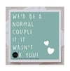 This card is perfect to show your love and make your partner smile. Printed with the text 'We'd be a normal couple if it wasn't for you' onto a Jade Blue background.