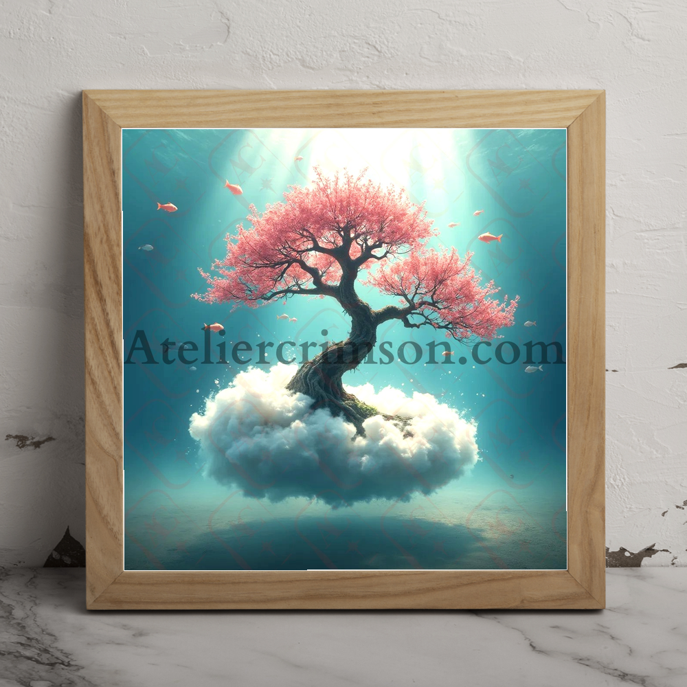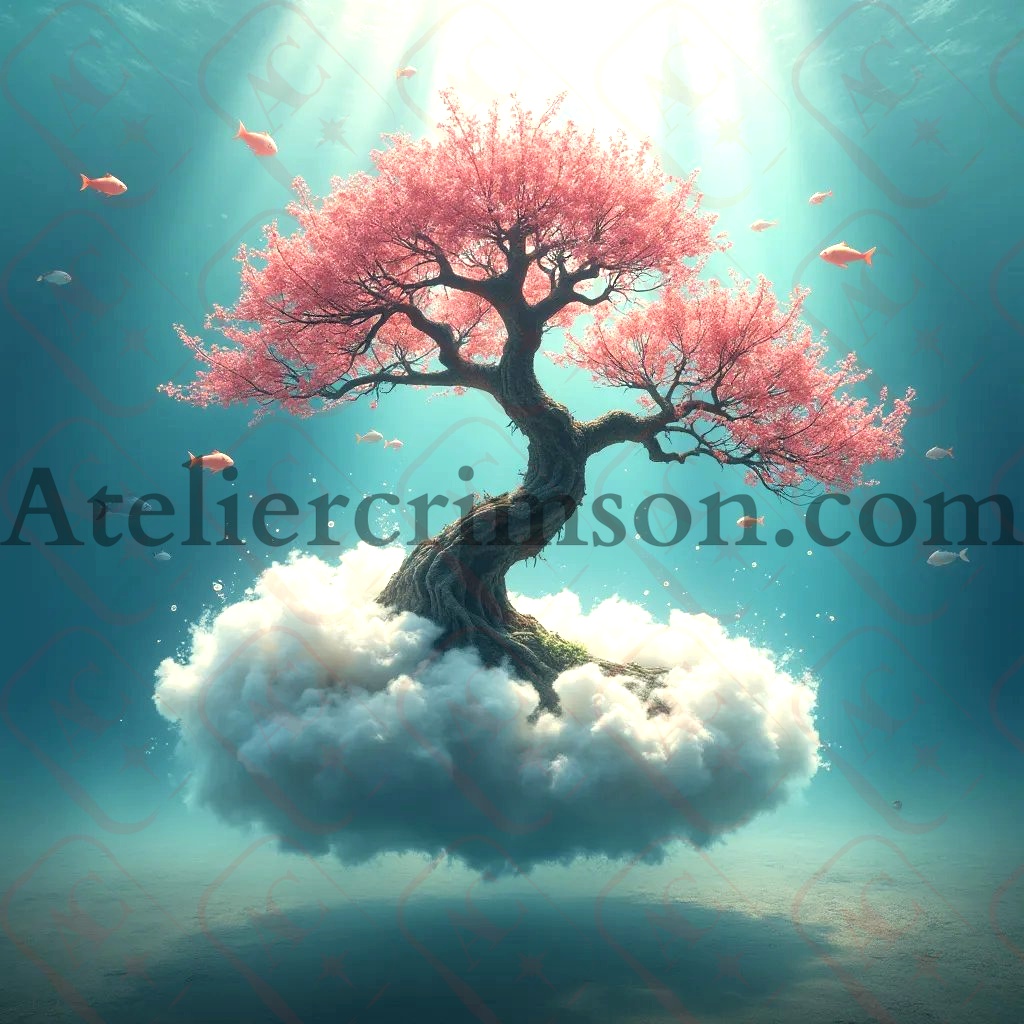 The letter I bonzai aquamarin cloud a captivating digital painting with a serene underwater bonsai. Download Now this high quality AI-generated image, perfect for adding a touch of tranquility and creativity to any space.