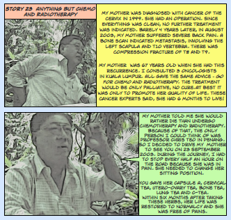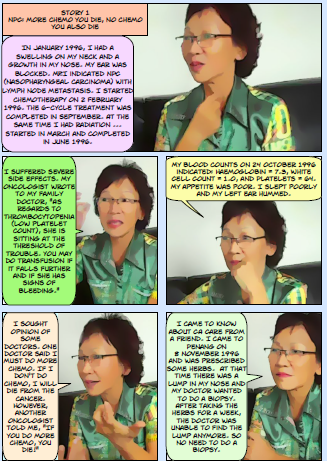 Be reminded that your cancer healing journey is not a honeymoon trip. It is going to be difficult, travelling on bumpy road less travelled. Don’t be misled by sweet promises of “sure cure”. The patients in these stories have one thing in common. They all have guts and they go to where their hearts want them to go. They put full faith and commitment in what they want to do.