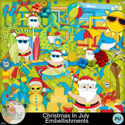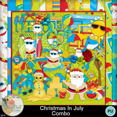 Santa's on vacation and enjoying the sand and waves! This adorable kit gives you everything you need to have Christmas in July. It would also be a great kit for those that celebrate Christmas in the tropics. This is a must have to add to your Christmas scrap collection.