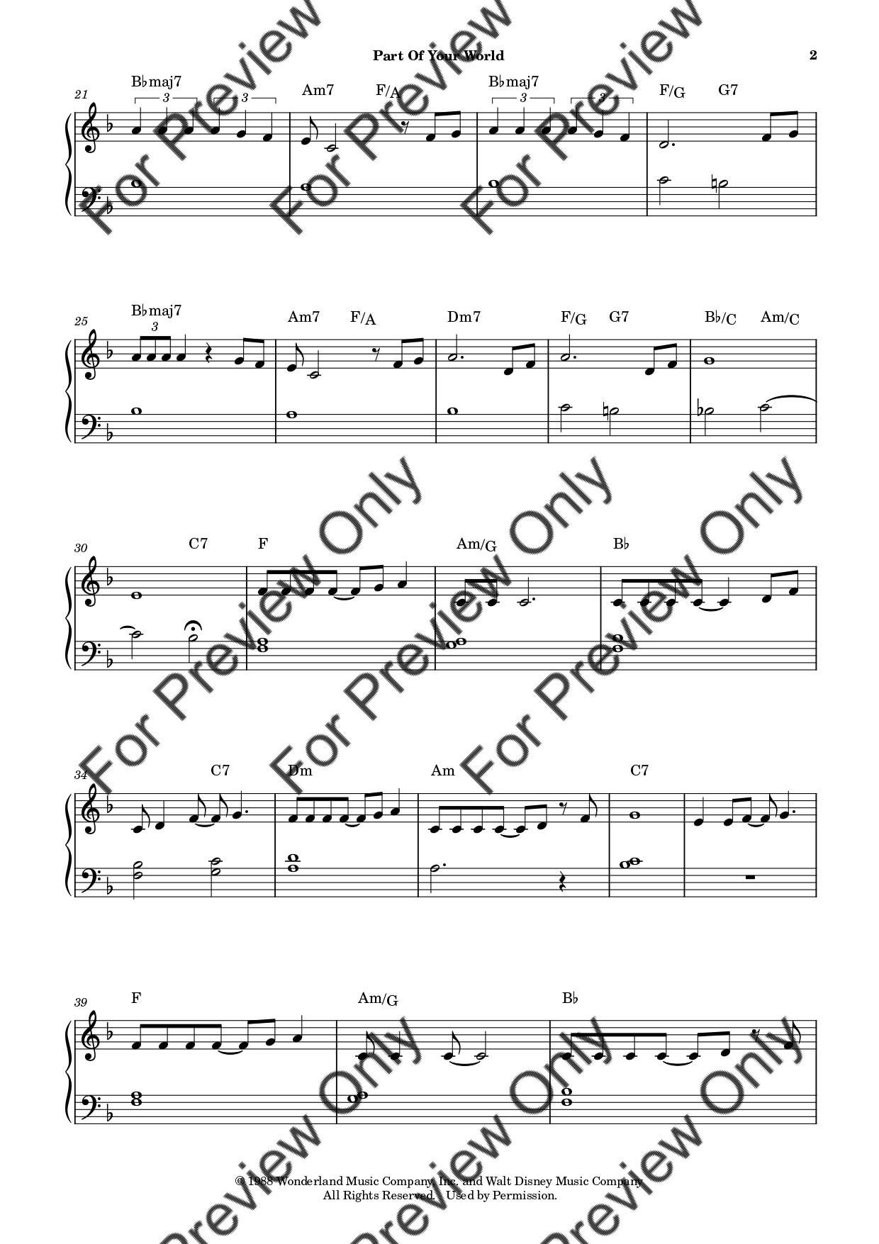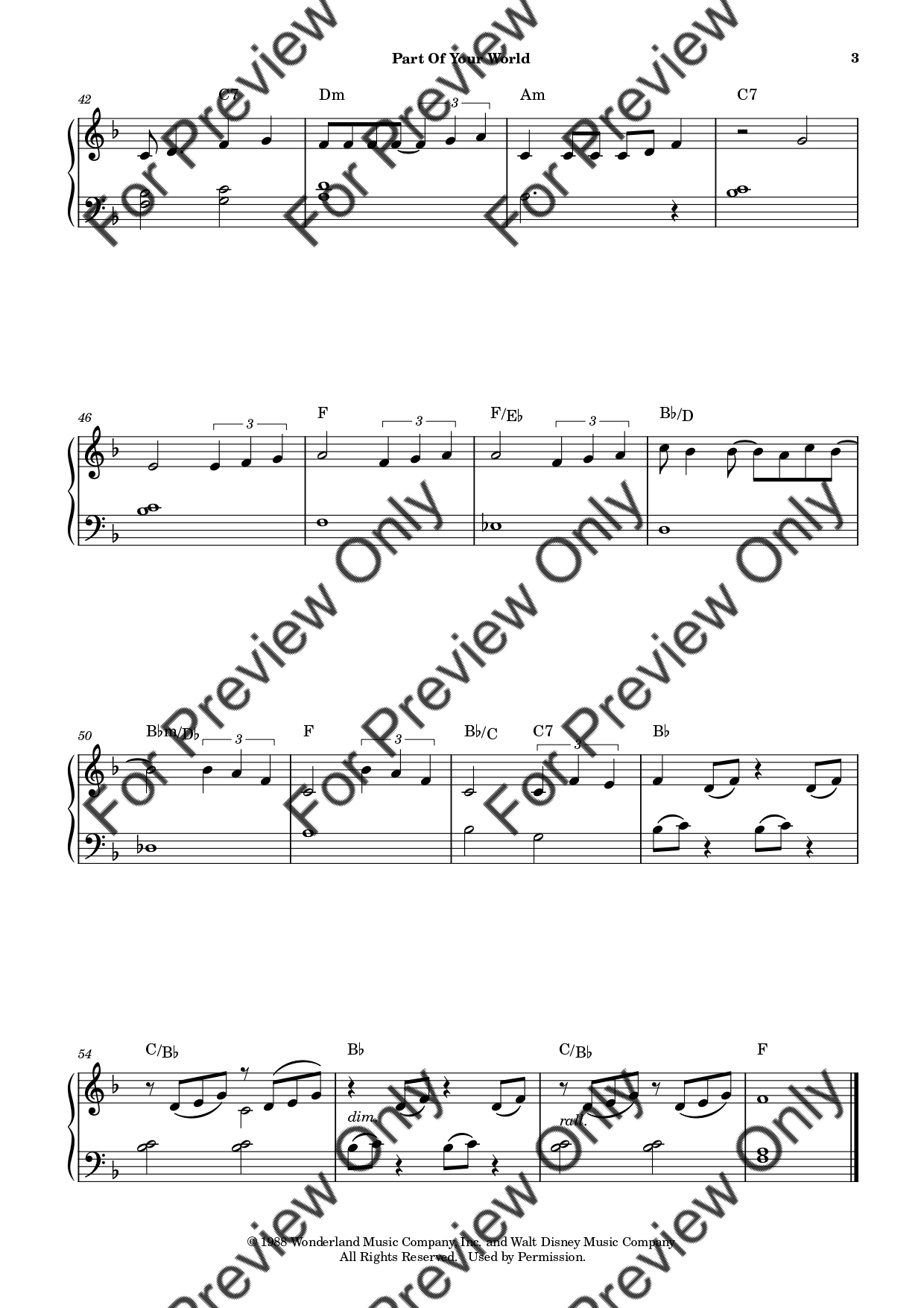 Part Of Your World from The Little Mermaid by Alan Menken. Arrangement for Beginner/Easy Piano. With Full Score. Have fun!