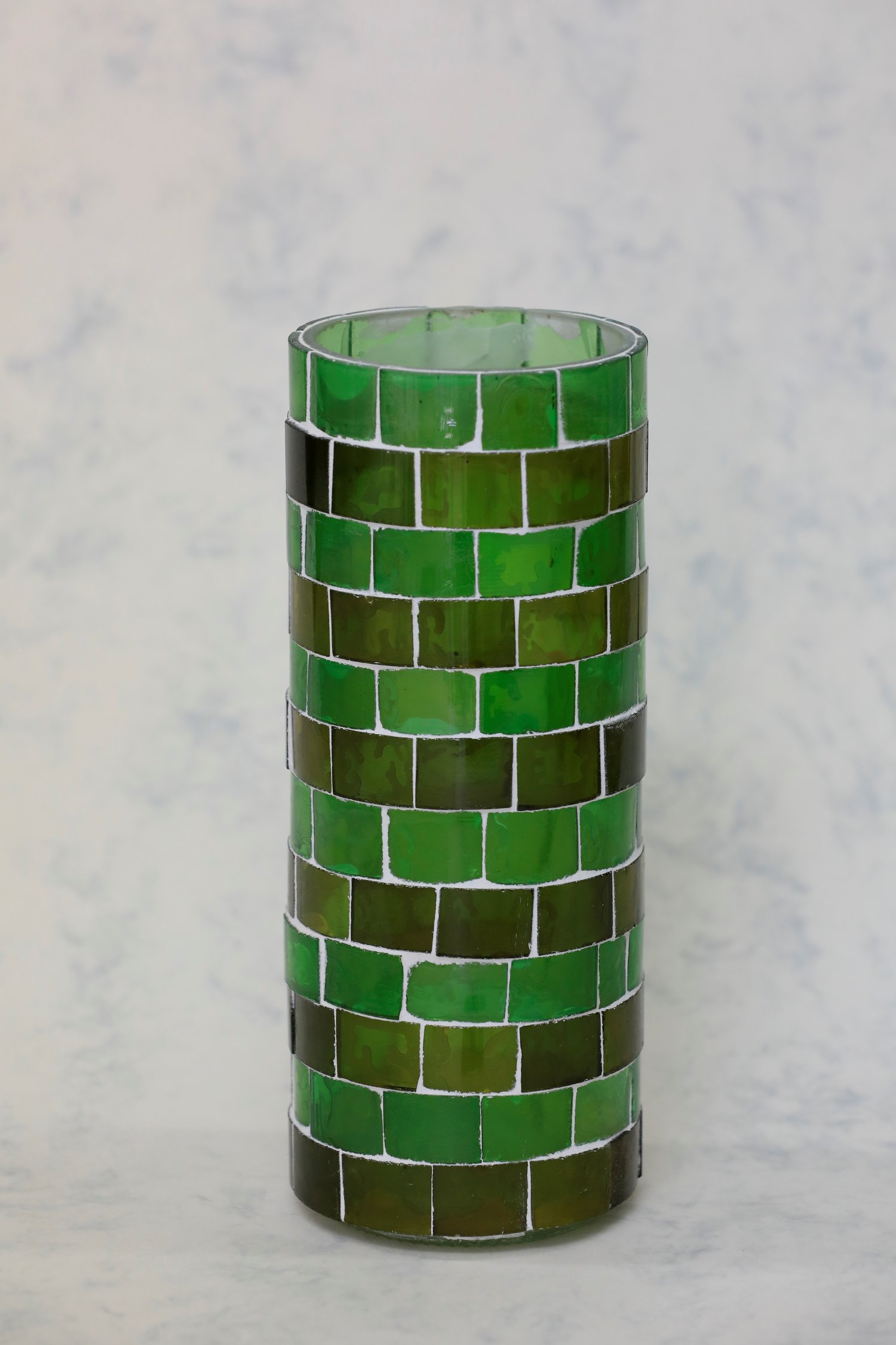 Crafted by a skilled artisan, this vase seamlessly blends sustainability with sophistication. The unique mosaic design adds a touch of elegance and charm, creating a captivating visual appeal that effortlessly enhances any room's aesthetic.