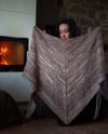 Ce châle se tricote de haut en bas, en partant du milieu, et en augmentant de façon à créer un très grand triangle.