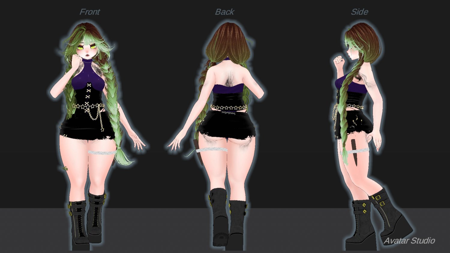 Clothes: Bodysuit, Halter dress, Skirt, Corset, Sleeves, and Boots! <3