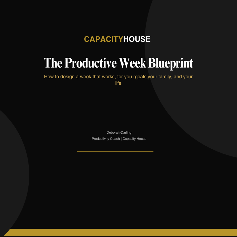 The Productive Week Blueprint is a 7-chapter system for taking back your week — built for women who are done guessing and ready for a framework they can actually follow.