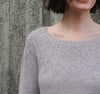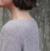 The sample has been worked using The Fibre Fox’s Alpaca Silk Fingering base (70% SW Baby Alpaca / 20% Silk / 10% Cashmere; 400m / 438yds per 100g) in colourway Wisteria.