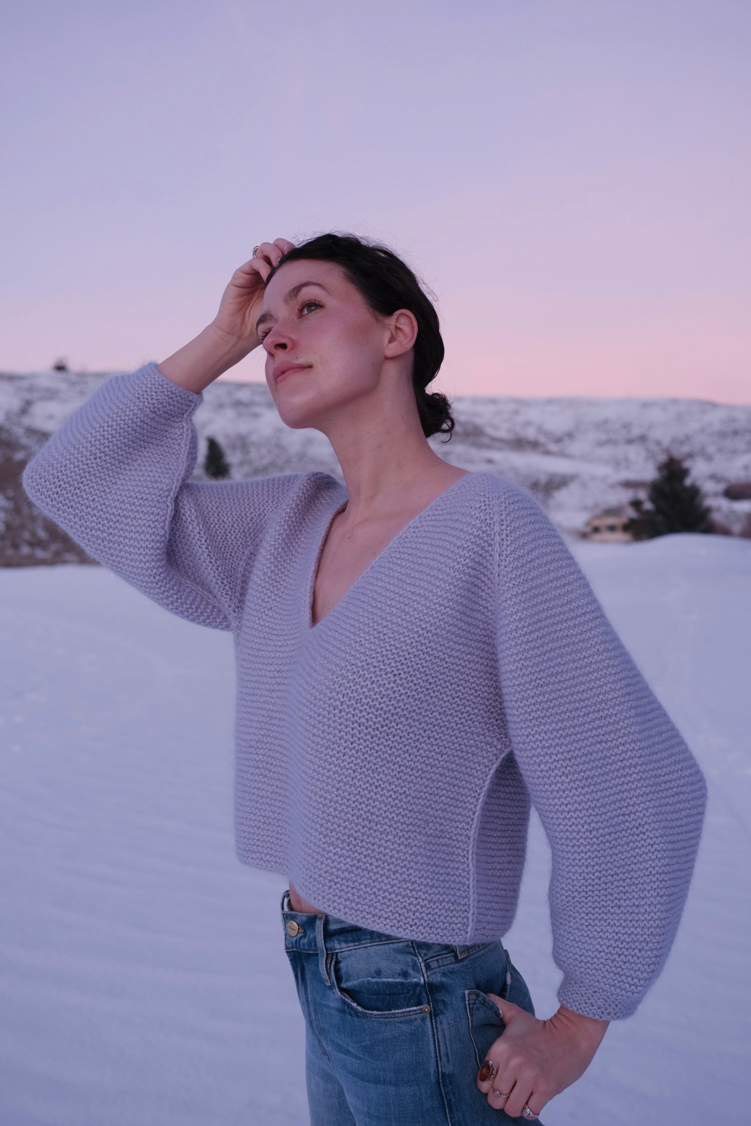 Arctic Armor functions as frosty chainmail to protect you from the harsh winter elements. The sweater is worked from the top-down in garter stitch with a subtle slipped stitch detail running along the body, sleeves, and raglan seams and features a slightly oversized fit with bracelet length balloon sleeves. Guaranteed to keep you warm and cozy while still looking like an elegant snow queen.
