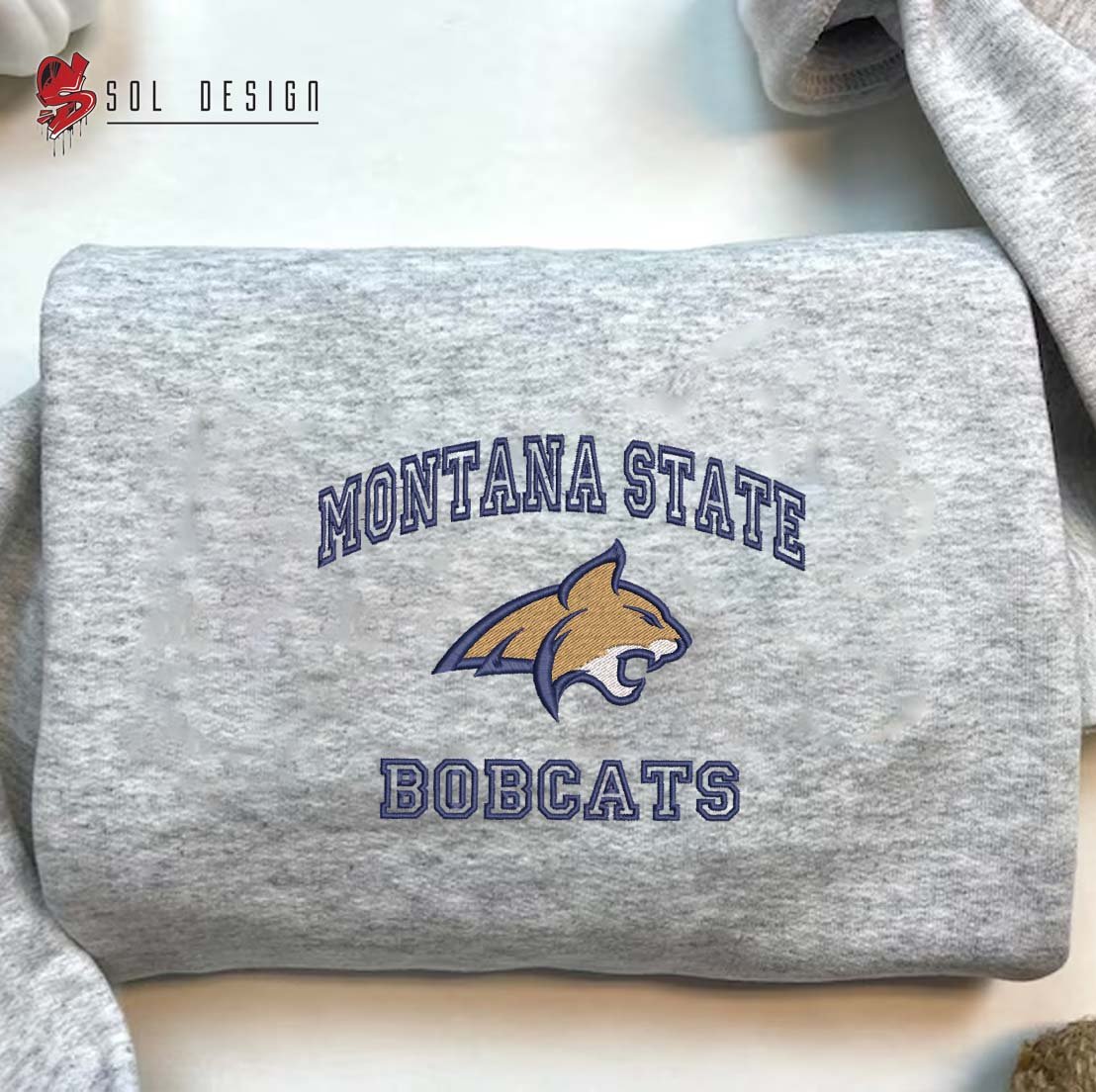 Montana State Bobcats Football Team Embroidered Crewneck, College Football Embroidered Sweatshirt, NCAA Montana State Bobcats Team Sweatshirt, Game Day Embroidered Hoodie, T-shirt