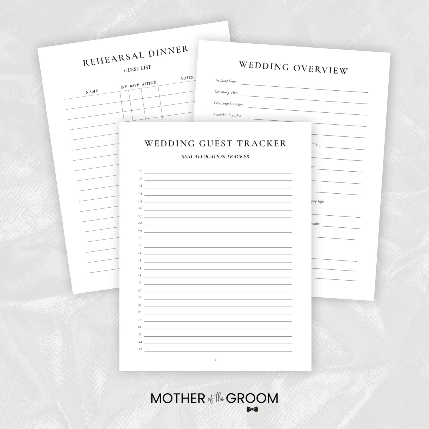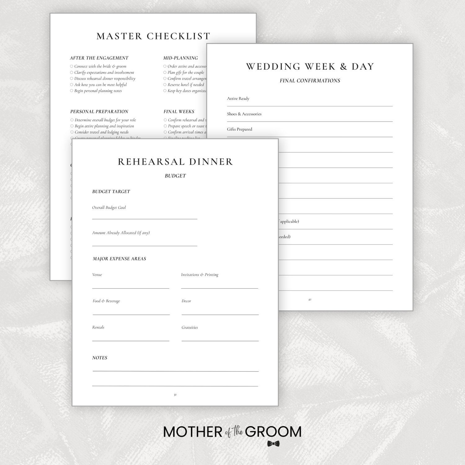 A structured Mother of the Groom wedding planning system designed to organize your responsibilities, rehearsal dinner plans, guest tracking, wedding week preparation, and post-wedding follow-through. Instant digital download.