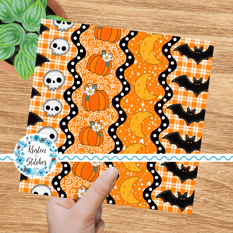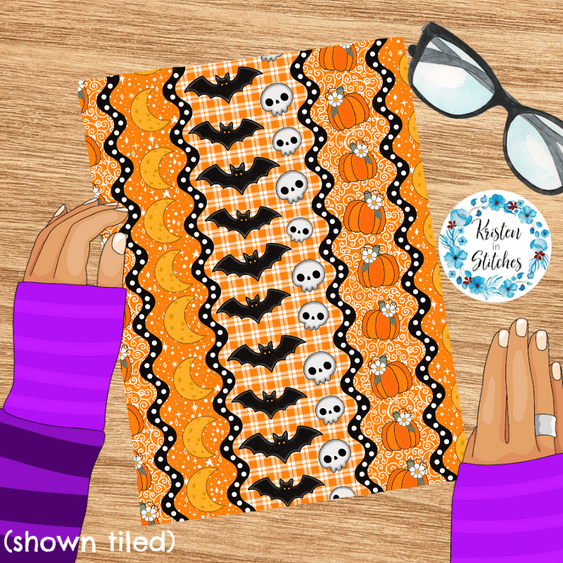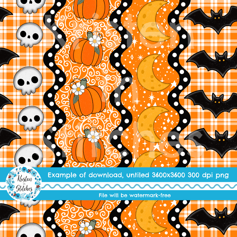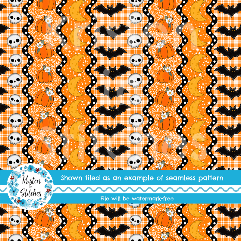 Halloween Haunts Spooky Stripes Pumpkins Bats Skulls Seamless Pattern
