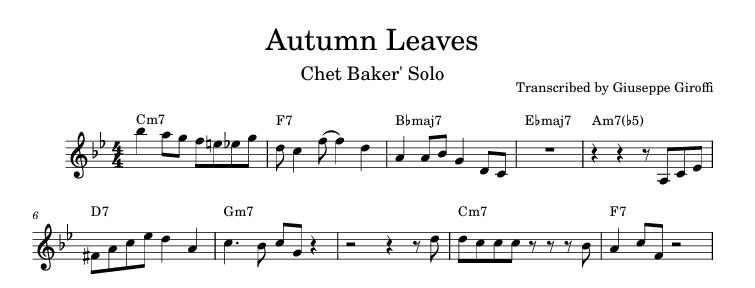 Chet Baker - Autumn Leaves transcription - Solo Trumpet (Bb)