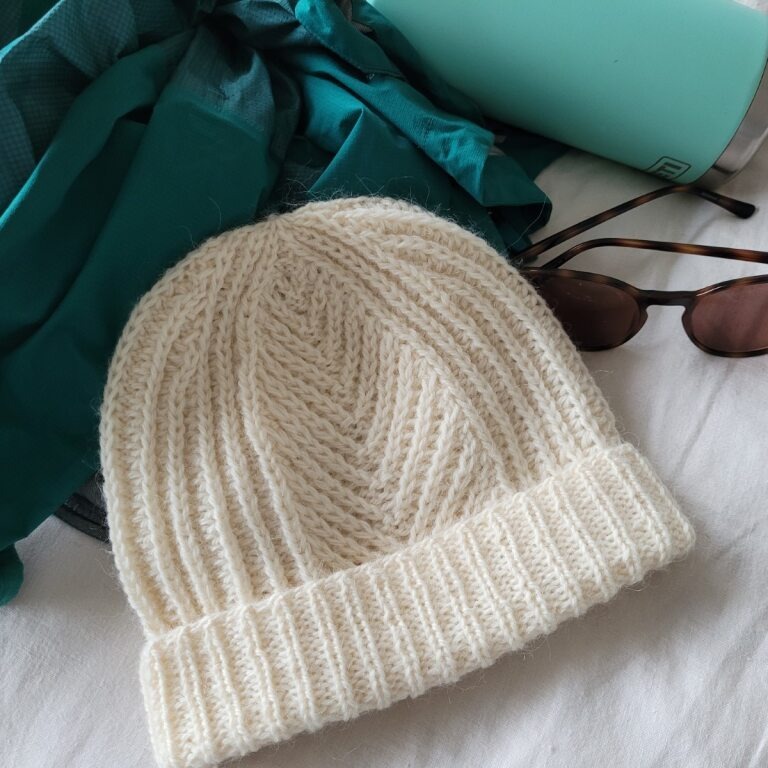 A Tent in the Woods is a soft and cozy beanie, knitted in an easier, modified half fisherman’s rib that gives a brioche-like texture without the complexity.