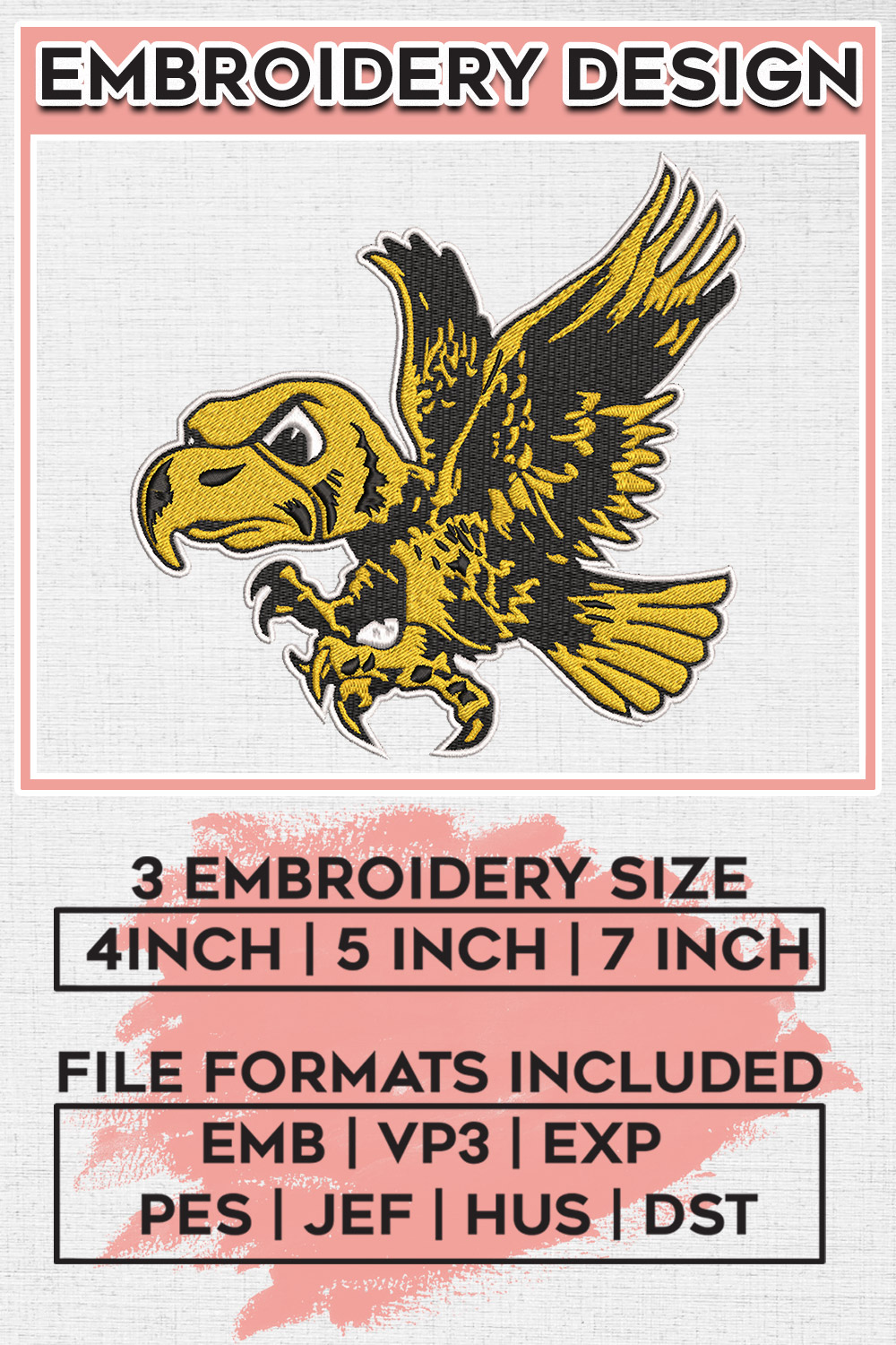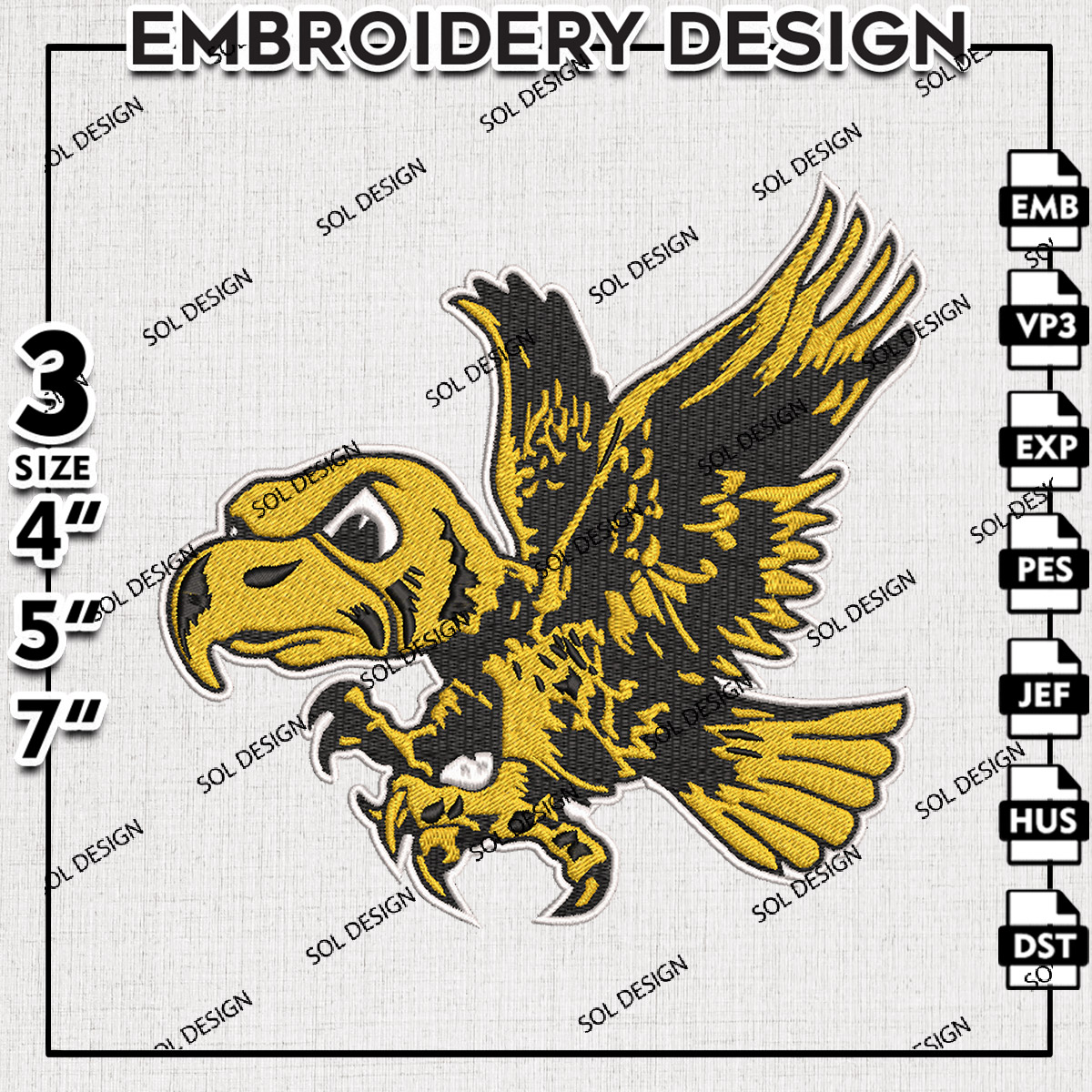 Iowa Hawkeyes Football Team Mascot Logo Embroidery Files, NCAA Iowa Hawkeyes Team Embroidery, NCAA College Football Teams, Iowa Team Emroidery, 3 sizes, Machine embroidery designs, Digital Down