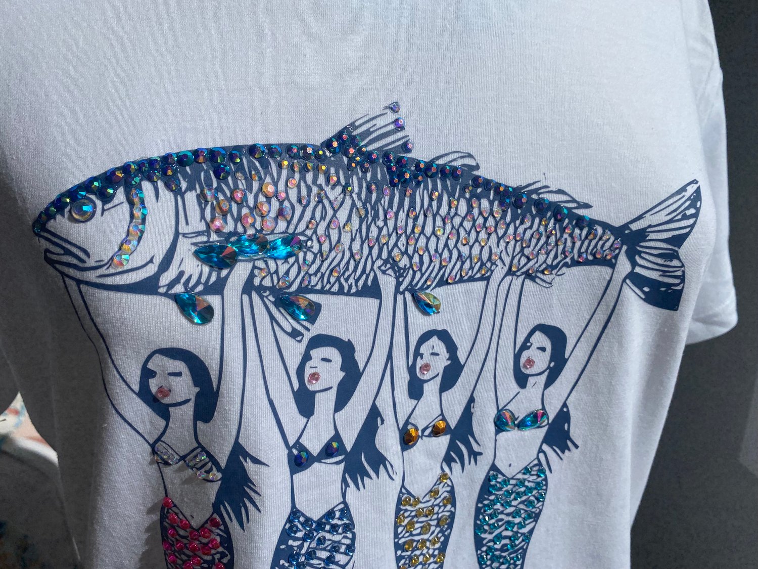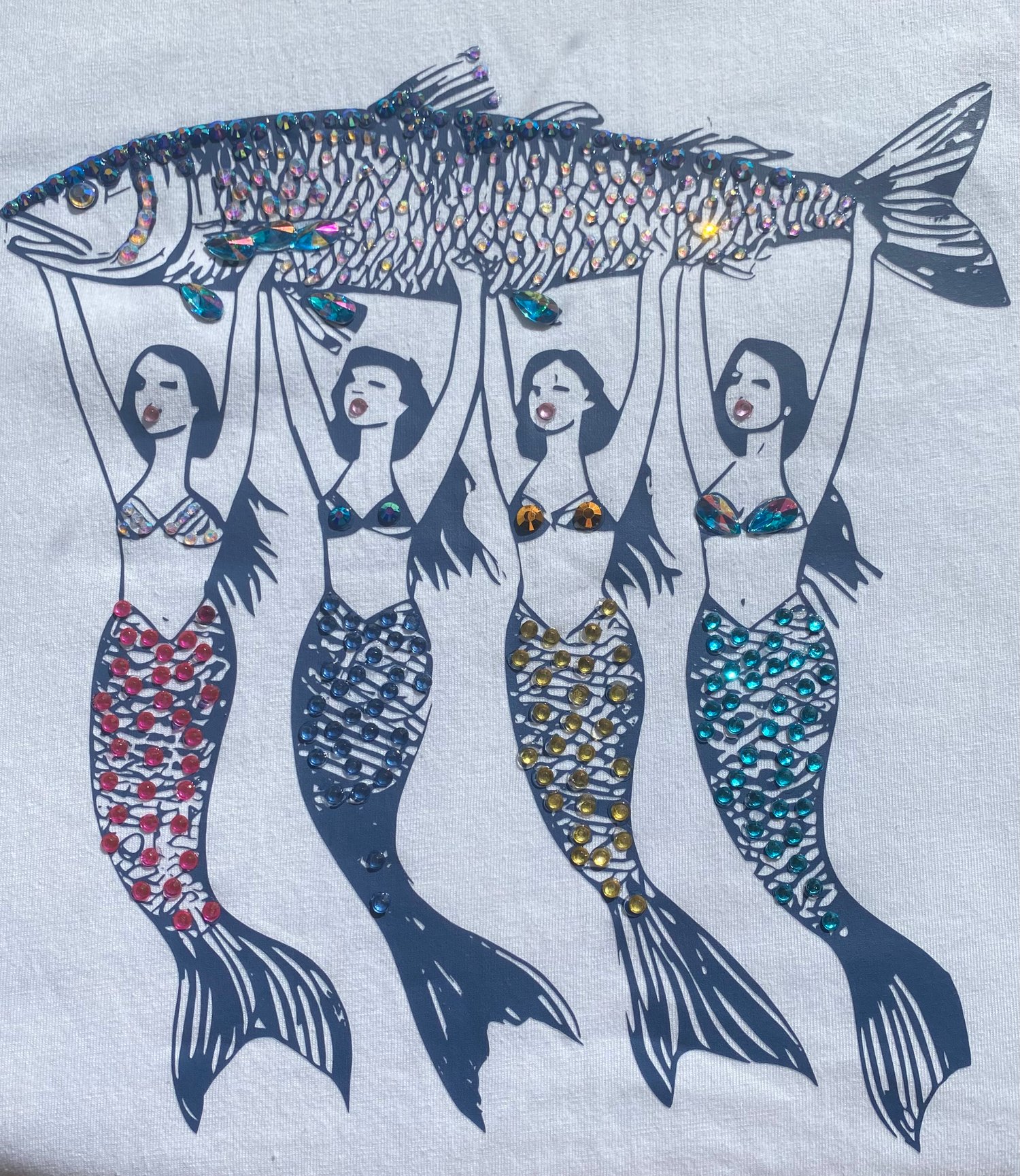 This design celebrates the romance of the sea: mermaids adorned like ocean jewels, playful yet powerful, forever woven into maritime legends and sailor folklore. It’s a tee for dreamers, sea lovers, and anyone who feels the pull of salt air and starlit waters.