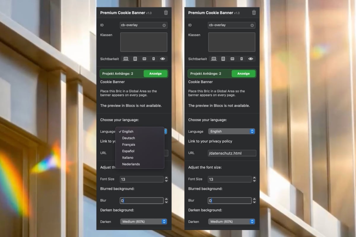The Premium Cookie Banner handles all cookie consent requirements automatically. External content is blocked until the visitor gives consent — and restored instantly when they accept.