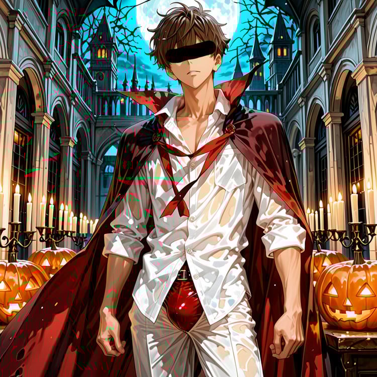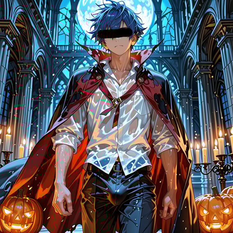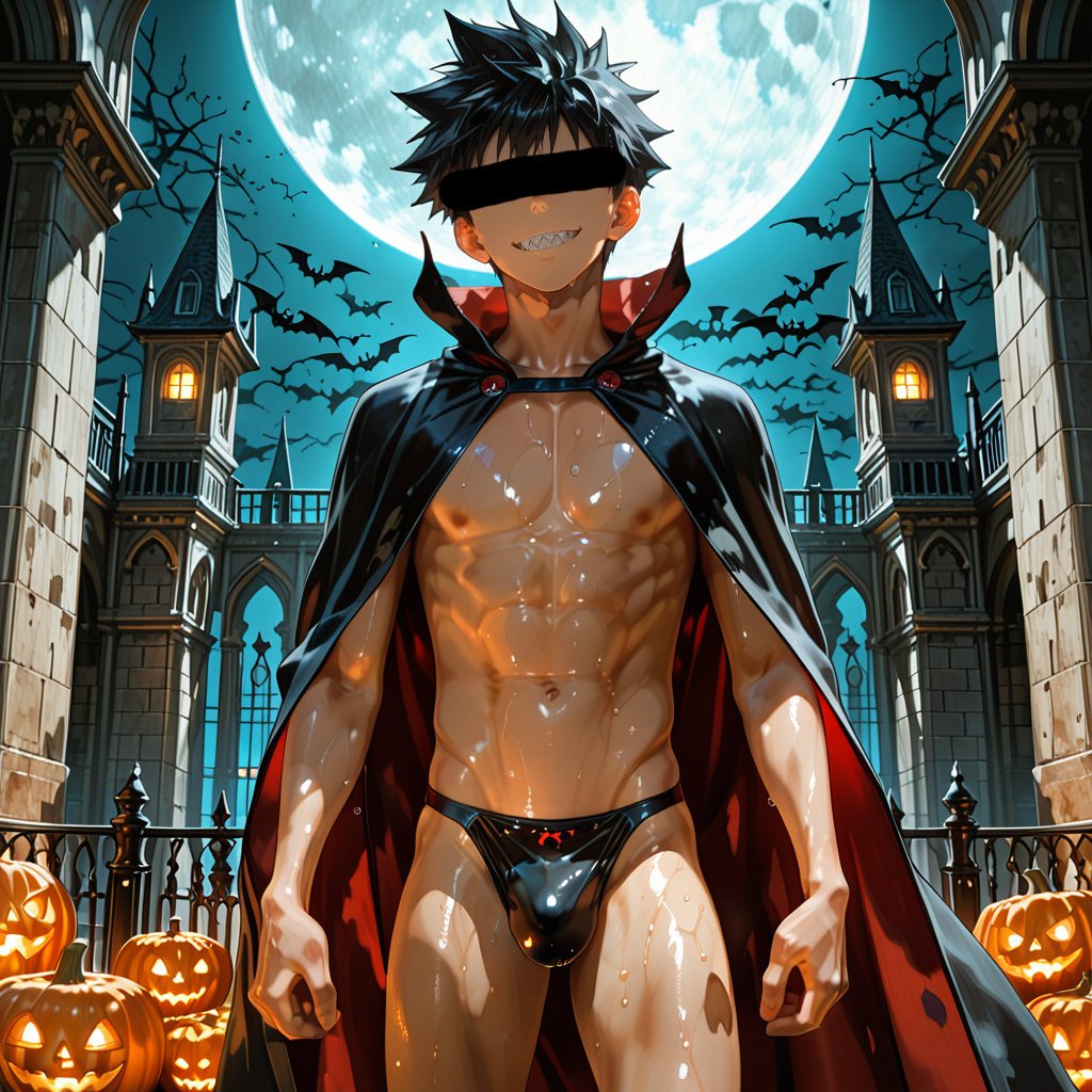 サウナで「ハロウィン」をテーマに、ヴァンパイアの男らしいキャラクターの魅力を思い切って表現しました。