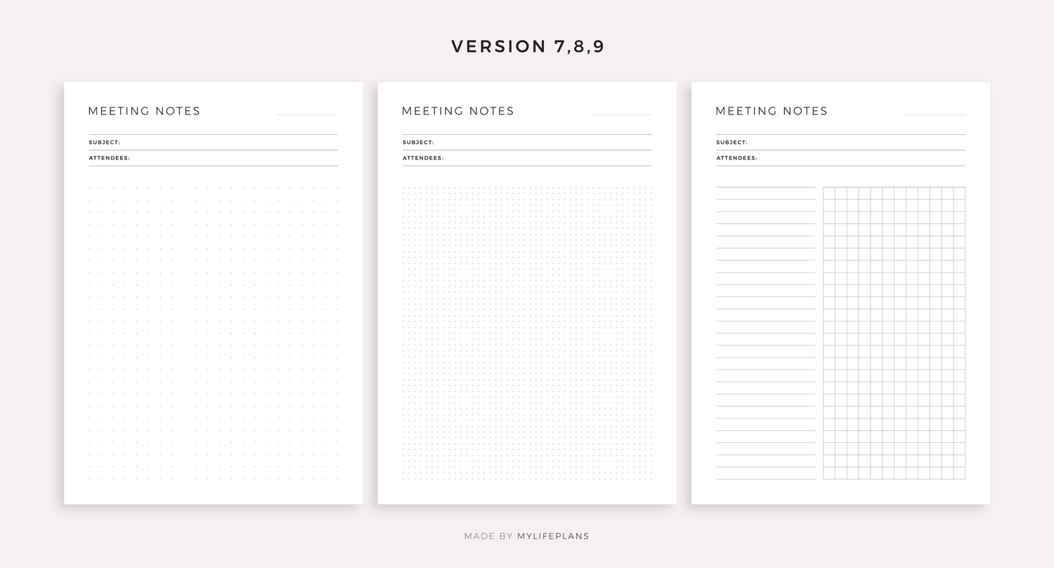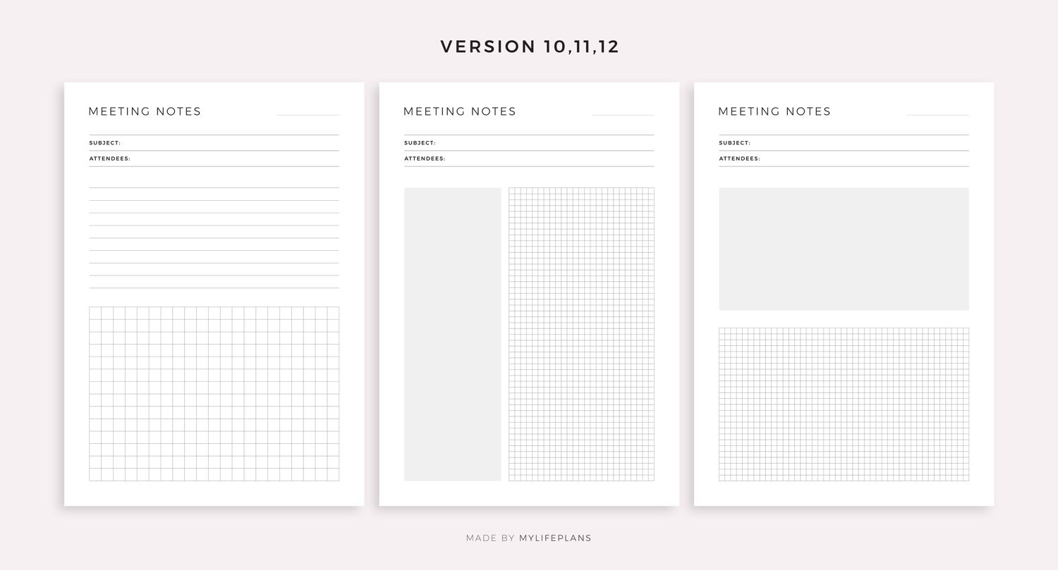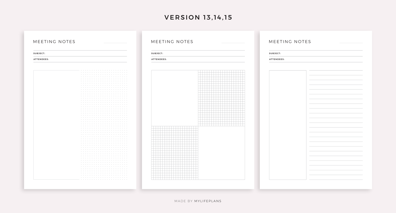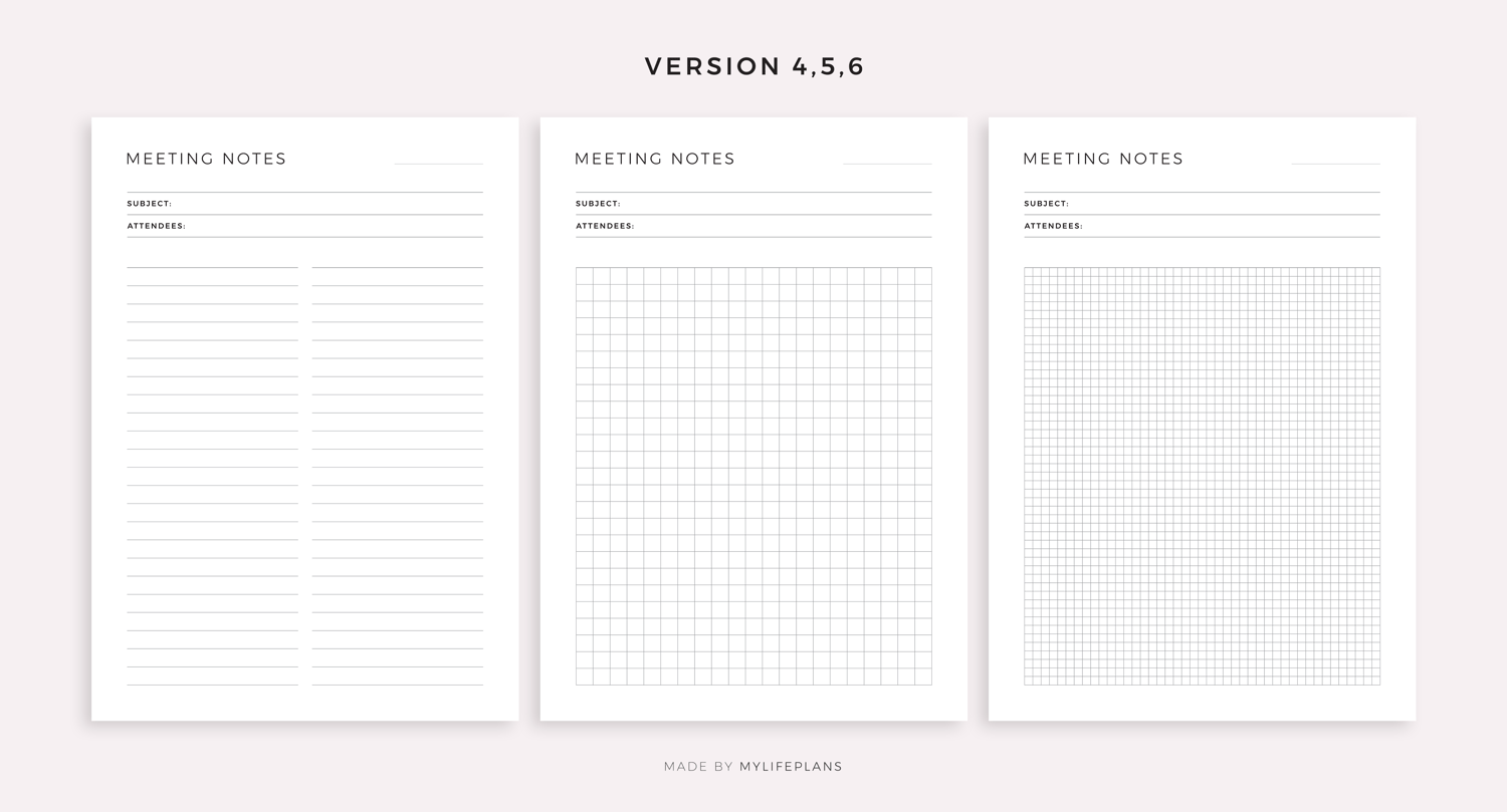 Simple Meeting Notes Printable Templates, Meeting Minutes, Work Notes, Office Notes, Project Notes
